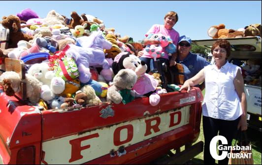 By die bymekaarkomplek in Stanford is die speelgoed, wat aan die motorfietse vasgemaak was, op ‘n veteraan Ford-bakkie gelaai, vanwaar dit in die Overberg versprei is.