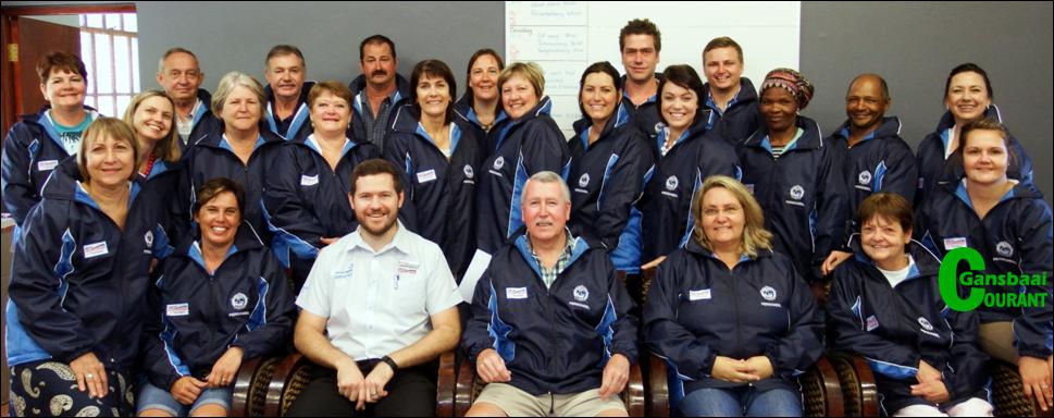 Laerskool Gansbaai se personeelkorps begin 2017 spoggerig met splinternuwe personeelbaadjies wat deur die Arrie Nel Apteekgroep Gansbaai geskenk is. Die skoolwapen is daarop gedruk met die woord “personeel” onderaan. Gansbaai Apteek se bestuurder/apteker, Cobus Claassen het die oorhandiging waargeneem.