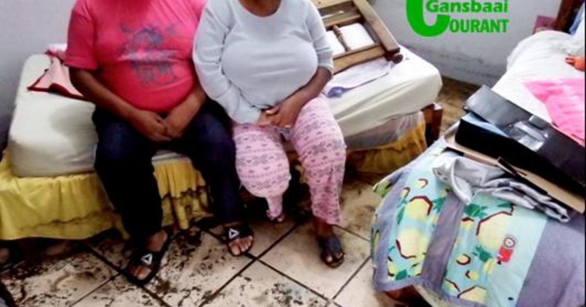 Reënwater het vanaf die straat by die voordeur van hulle huis ingestroom en die hele binnekant in chaos gedompel.
