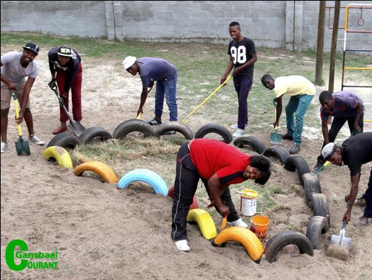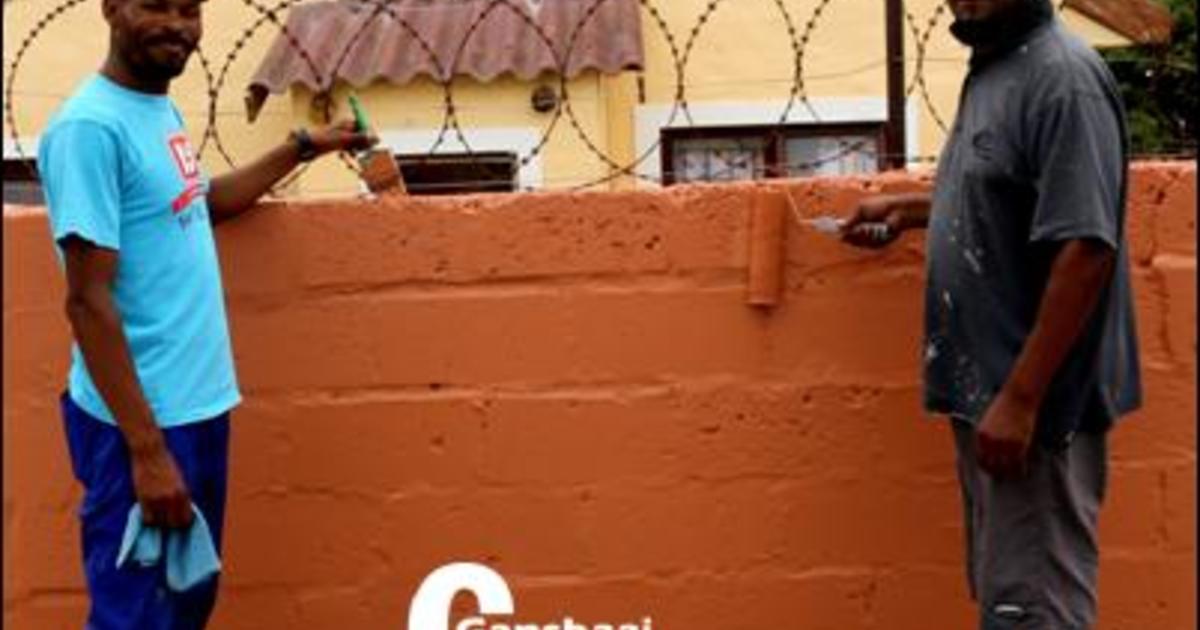 Die tuinspan onder leiding van Pontsho Chiloane, was baie besig met verf en plant, toe Gansbaai Courant by die skooltjie opdaag.