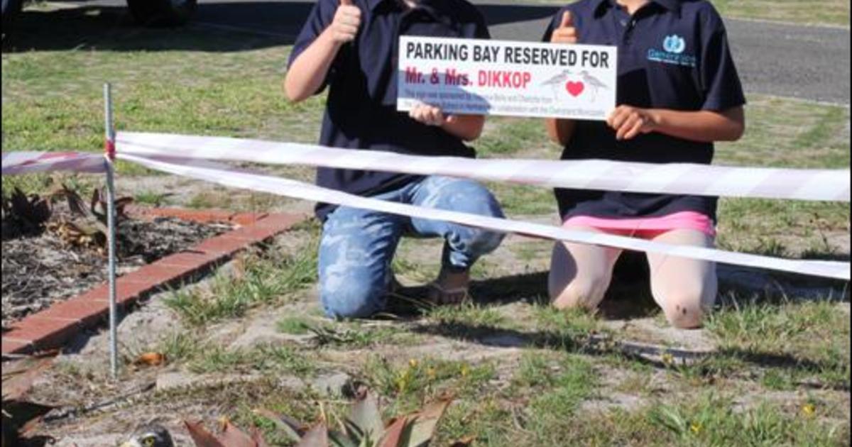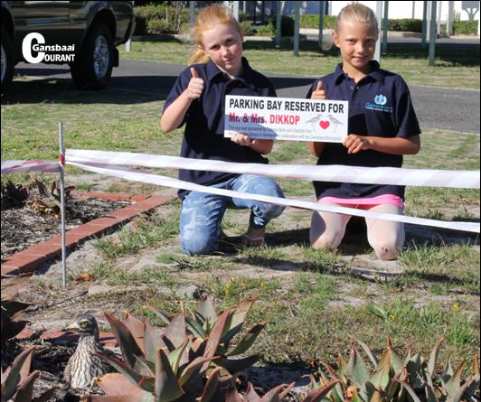 Hulle het in samewerking met die munisipaliteit ‘n spesiale padteken daar laat aanbring: “Parking Bay Reserved for Mr & Mrs Dikkop”!