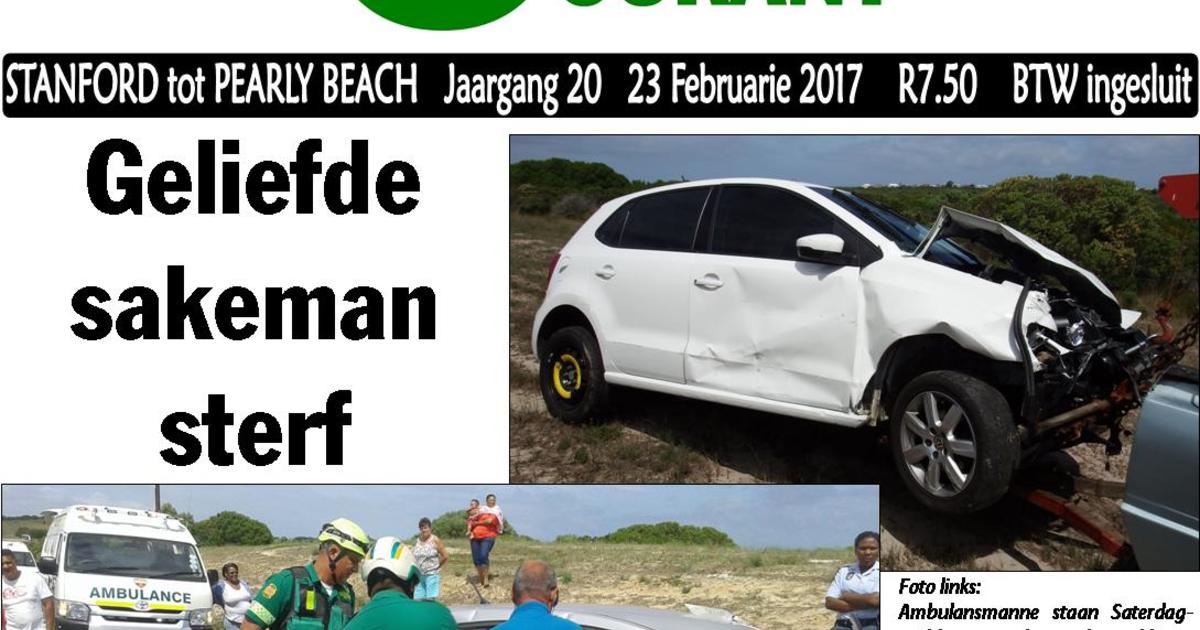 ‘n Massiewe beroerte-aanval wat tot ‘n ernstige motor-ongeluk tussen twee motors gelei het, het Saterdag, 18 Februarie 2017 die dood van ‘n bekende sakeman van De Kelders tot gevolg gehad en ‘n inwoner van Blompark ernstig beseer gelaat.