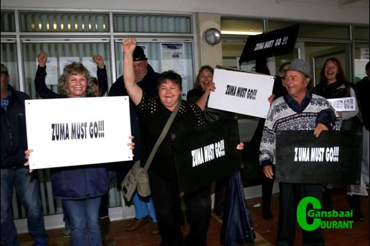 Die landwye veldtog om die land se president uit sy stoel te lig, het ten spyte van reën en wind ook Gansbaai se mense laat saamstaan. Heelwat mense wat nie daar kon wees nie, vertel dat hulle die protesaksie ondersteun het.