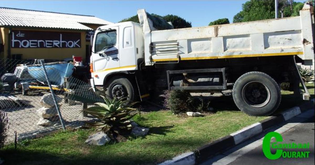 Hy kon dit op geen manier keer nie. Dit het versnel, oor Barnardstraat geloop en deur die tweedehandse handelaarsaak, Die Hoenerhok se heining gebars, waar dit voor ‘n potjiebad tot stilstand gekom het.