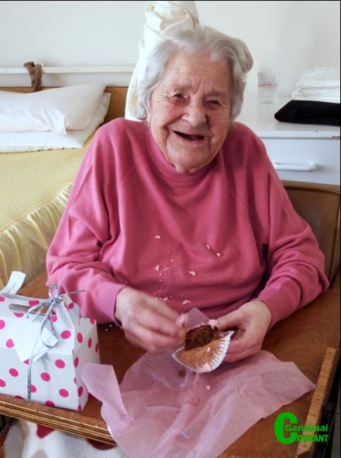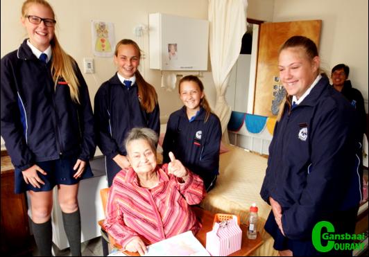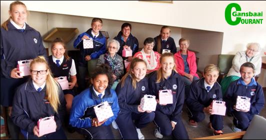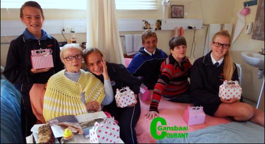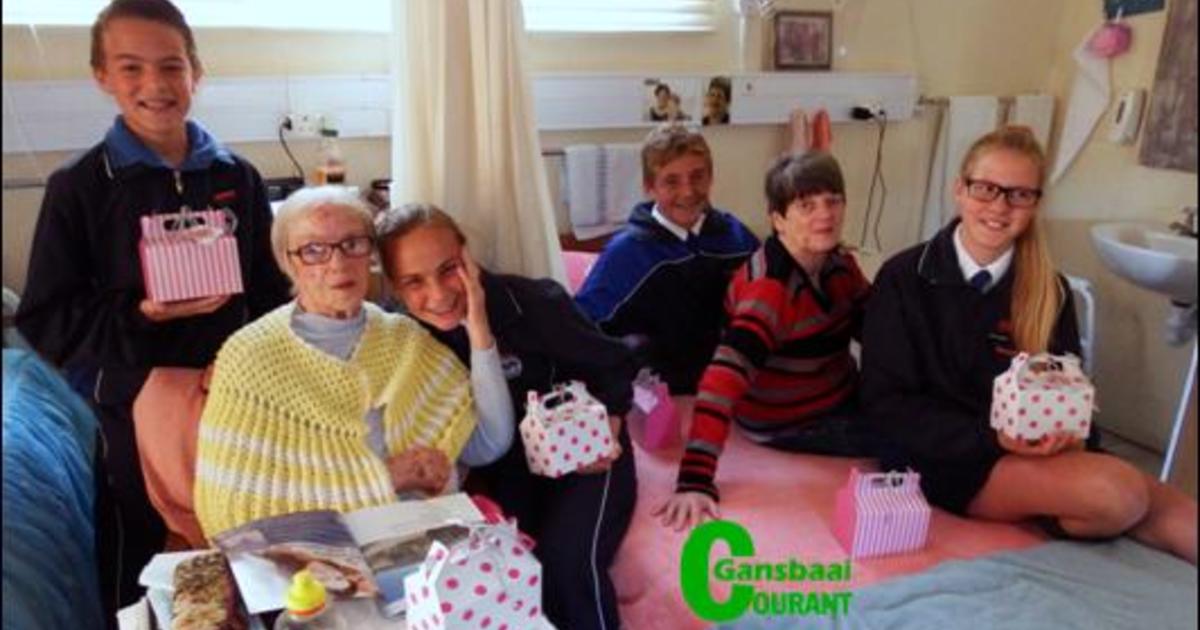 Gansbaai Goue Hande het kleurvolle geskenkpakkies met lekkernye uitgedeel, terwyl Laerskool Gansbaai se leerlingraad, onder leiding van onderwyseres, Marlene Koekemoer, dieselfde gedoen het. Hulle het ook allerlei geselsies met die oumas aangeknoop en drukkies uitgedeel. Seaview Cravings het gesorg vir ‘n yslike groot versierde koek en pragtige versierde kolwyntjies. Die oupas is sommer terselfdertyd ook bederf.