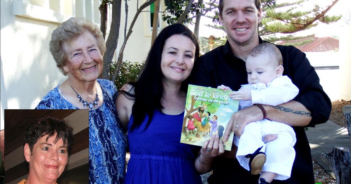 Die 82-jarige Hermine Groenewald, ‘n lidmaat van die plaaslike NG Kerk, was bevoorreg om by te staan met die doop van haar tweede agterkleinkind, Jaco Geldenhuys. Jaco is op 21 November verlede jaar gebore en is verlede Sondag deur ds Dirk van Dyk gedoop. Hermine het 3 kinders, 6 kleinkinders en 2 agterkleinkinders.