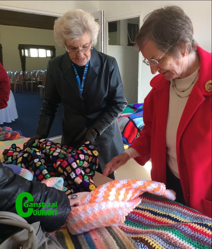 As part of their outreach to the community the ladies of the Gansbaai Family Church got busy with knitting- and crochet-needles and produced tables full of cosy colorful blankets and warm comforting caps. These items will be distributed to the needy in the community. Here (left) Jubie Kriel who is the Church organist and Jill Collings, who heads the Helping Hands team, admire their collective handiwork.