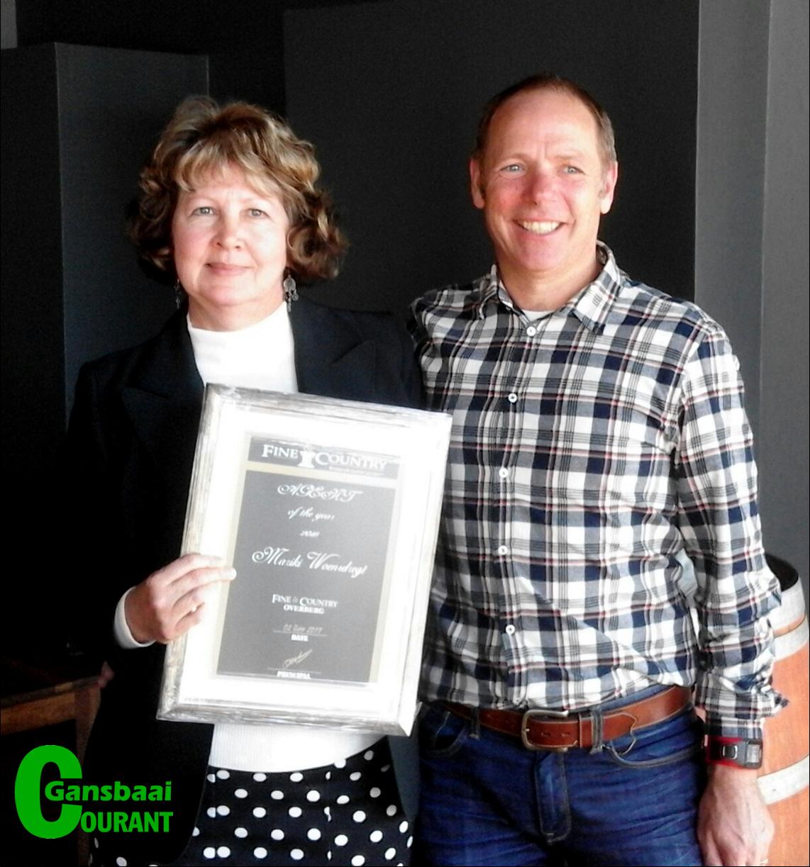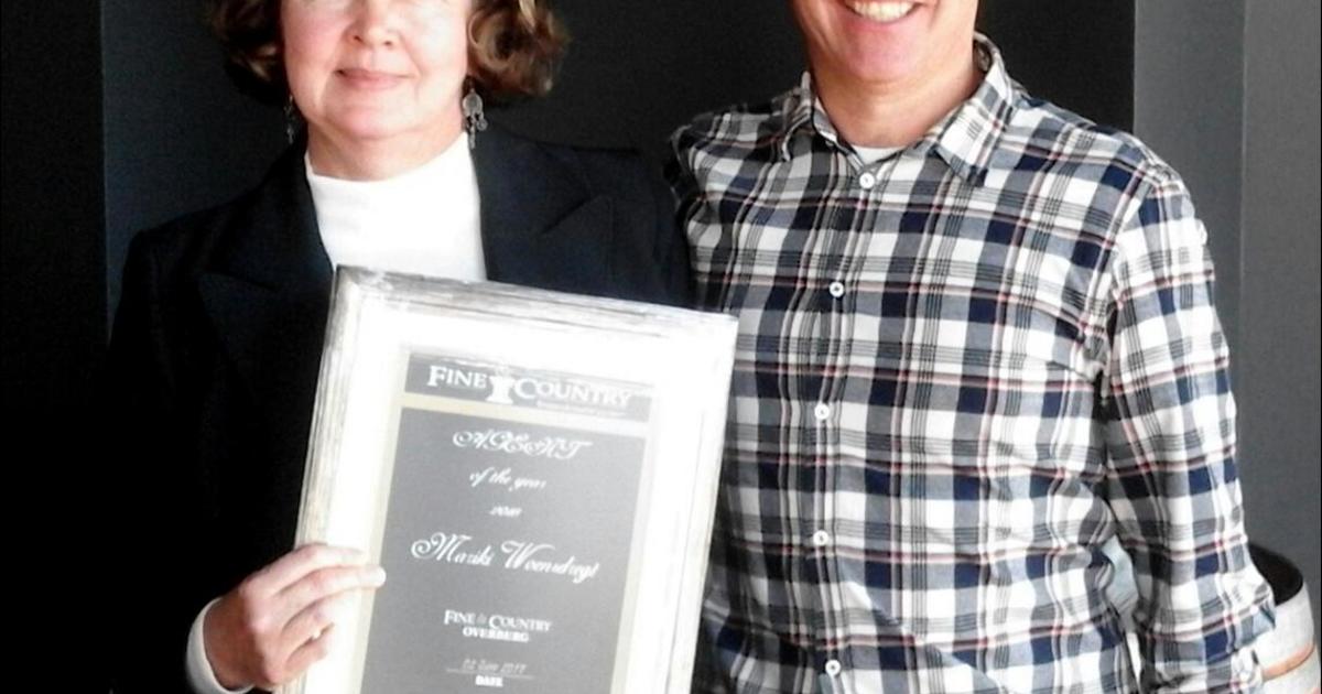 Mariki Woensdreght van Fine & Country is vanjaar dié maatskappy se trotse Agent-van-die-Jaar. Hiervoor het sy ‘n trofee en geraamde sertifikaat ontvang.