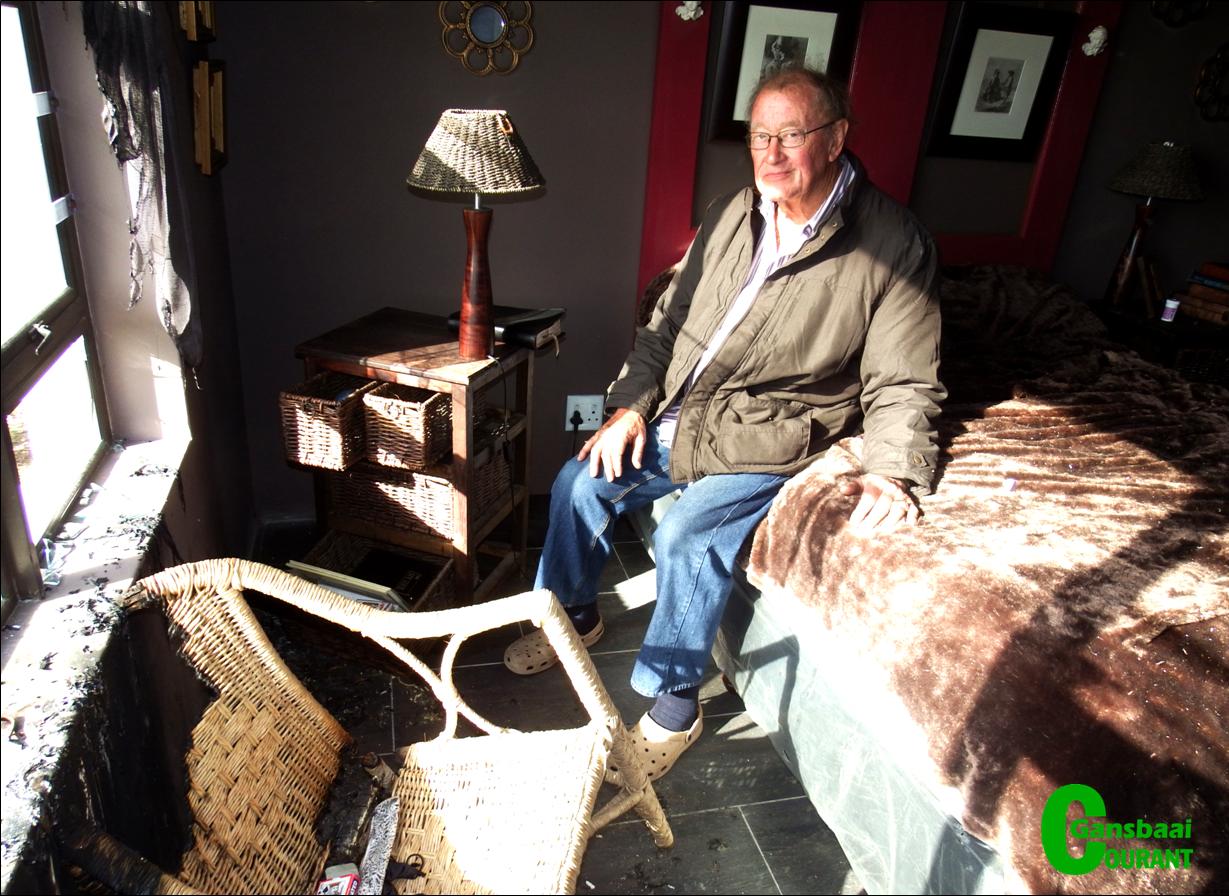Hy het waarskynlik dadelik op die vlug geslaan, aangesien niks gesteel is nie. Die vlamme het opwaarts versprei en die plafonkante in die kamer is verbrand.
