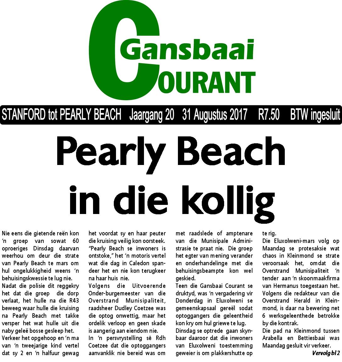 “Pearly Beach se inwoners is ontstoke,” het ‘n motoris vertel wat die dag in Caledon spandeer het en nie kon terugkeer na haar huis nie.