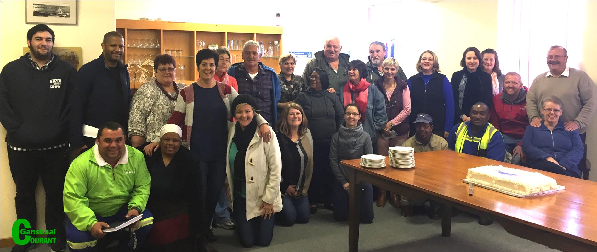 Destyds het Gilbert Hart besluit om ‘n twee-laag verjaardagkoek, met Overstrand Munisipaliteit se wapen daarop, aan Kat Myburgh, Areabestuurder van Gansbaai Munisipaliteit te skenk – ‘n skenking wat ‘n jaarlikse tradisie by hom geword het – vanjaar vir die 19de keer!