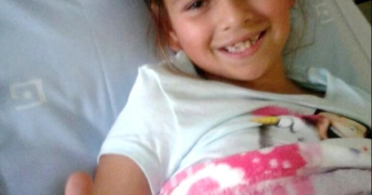 ‘n Glimlaggende Carli Swart (7) het Dinsdag, 19 September 2017 vanuit haar hospitaalbed in die Louis Leipoldt Hospitaal haar duimpie in die lug gesteek sodat haar ma ‘n spesiale foto vir Gansbaai Courant kan neem om vir almal wat omgee te wys hoe goed dit met haar gaan.