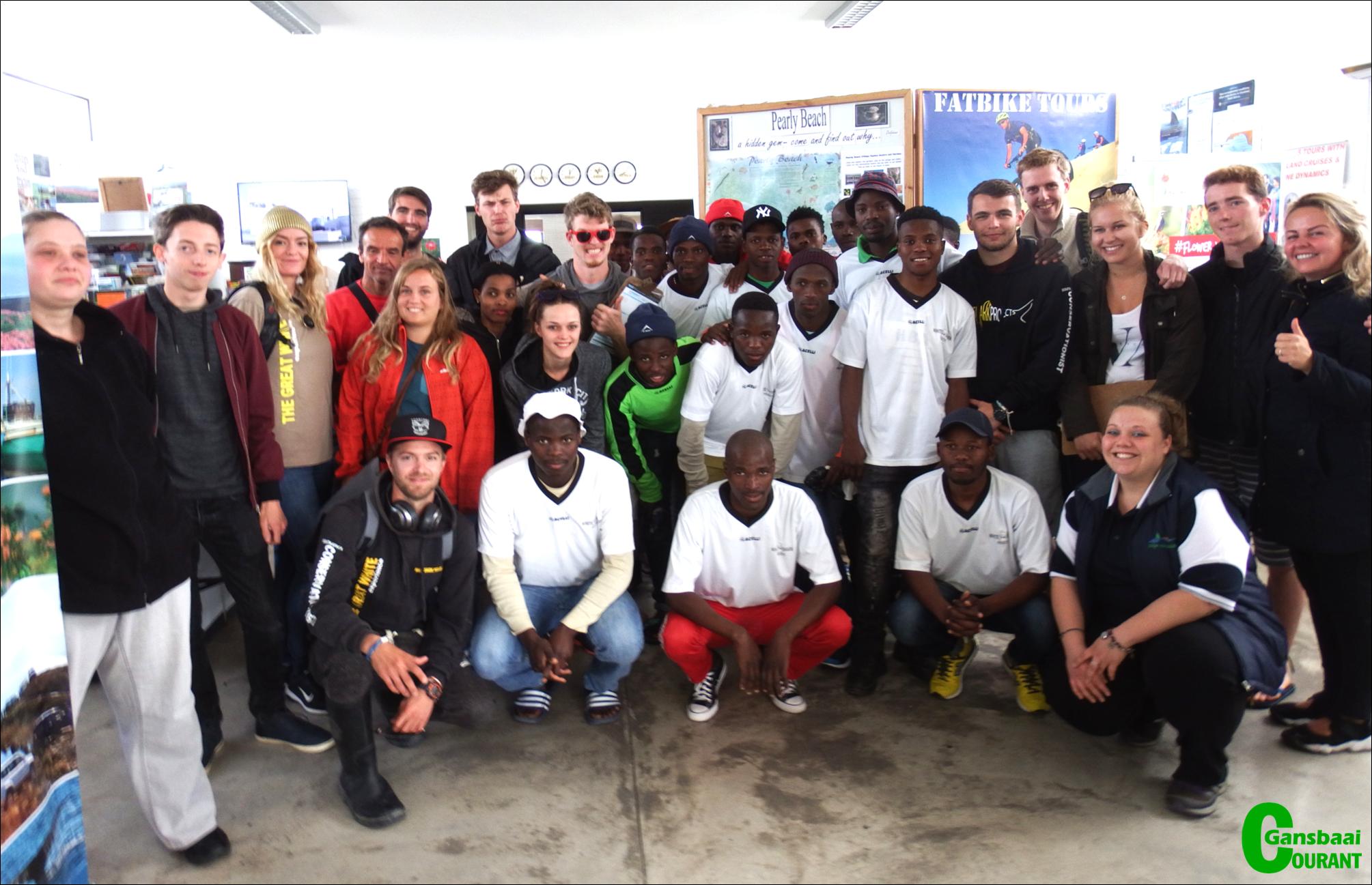 Die groep van 39 vrywilligers is deur Doulene Els van Gansbaai Toerisme gewerf vanuit die geledere van White Shark Projects Volunteers, Cape United Project Soccer Team, La Pentola in Hermanus, asook 3 plaaslike inwoners.