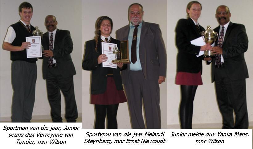 Die sportvrou van die jaar is Melandi Steynberg en sportman van die jaar is Verrreynne van Tonder.