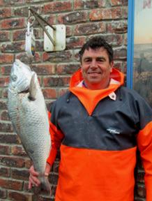 Hannes Smuts spog met sy 5.9kg steenbras, die swaarste vis vir die dag