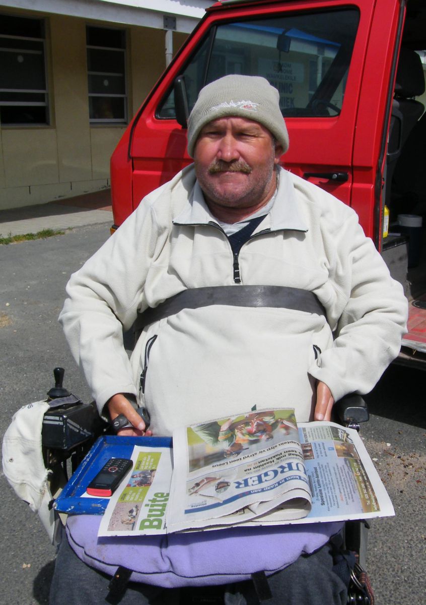 “’n Persoon van wie al vier ledemate verlam is,” lui die beskrywing van ‘n kwadrupleeg in die HAT-woordeboek. Dit is ook waar van Andrè Mostert (50) van Franskraal, maar van sit en niks doen in ‘n rolstoel, kan beslis nie van hom gesê word nie. Andrè is oorspronklik van Kraaifontein en het homself as ‘n loodgieter bekwaam. Gedurende 1991 het hierdie eens gesonde en fikse rugbyspeler, ‘n ernstige rugbybesering opgedoen en is sedertdien ‘n kwadrupleeg wat in ‘n rolstoel vasgekluister is.