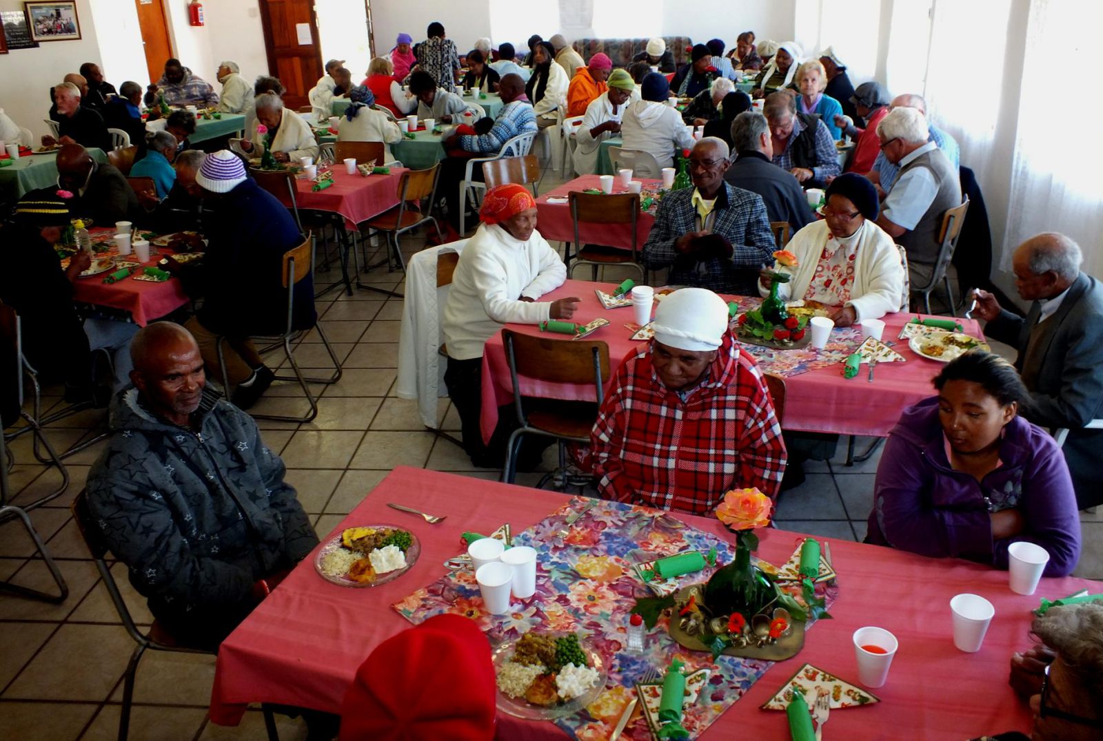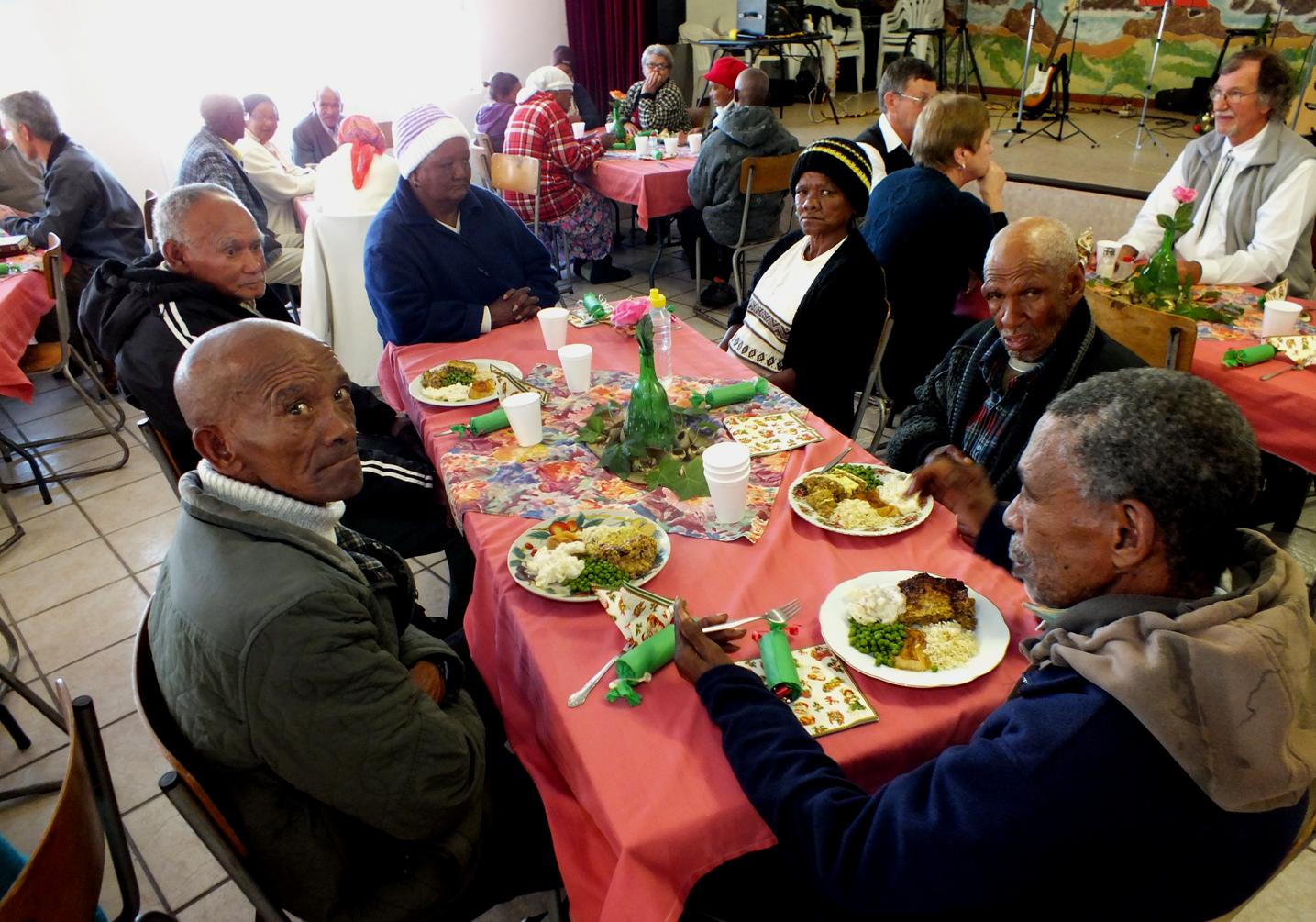 Silwerjare Dienssentrum se bejaardes is onlangs weer eens behoorlik met ‘n smaaklike Kersete bederf - soos net die dames van die NG Vrouediens se Uitreikaksie dit kan doen. Sowat 80 etes is voorberei en het uit smaaklike bobotie, rys en bykosse bestaan, met natuurlik die lekkerte van ‘n smaaklike vla-snynagereg agterna. Die bevoorregte bejaardes het by netjies-versierde tafels aangesit. Ds Willie Kotze het met die lees van Ps 71 geopen en klem op die verouderingsproses geplaas, wat die pad is wat elke mens moet stap. ‘n Frase uit ‘n treffende gebed wat hy voorgelees het, lui: “Here, as U die herfs van my lewe net so diep en ryk sal maak soos die goud en rooi van die herfsblare; dan is die verlies van die lente- en somerjare niks in vergelyking met die wins van die herfsjare nie.”