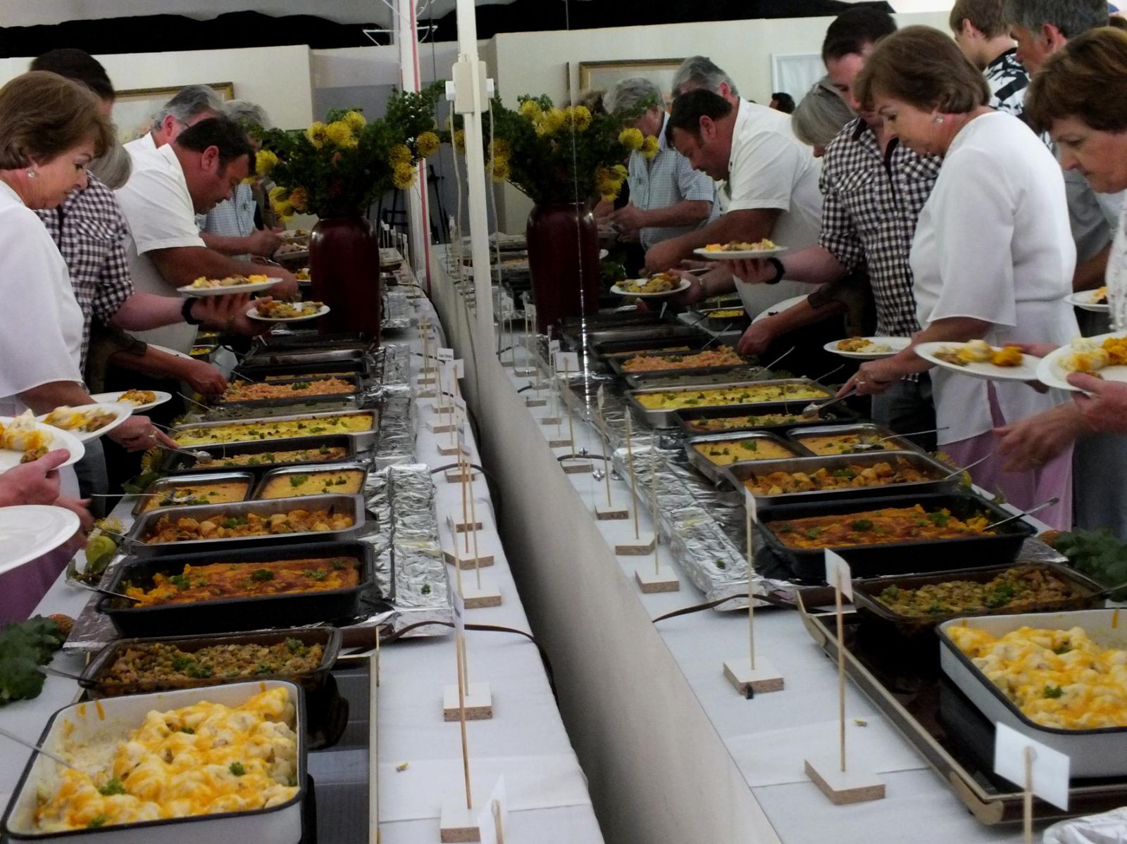 OMGEE Bedieninge se “Teelepel-ete” van Sondag, 10 November, het heelparty gaste verras - dis nou met die hoeveelheid kos wat met ‘n teelepel opgeskep kan word. Die groot verskeidenheid van geregte het natuurlik ‘n rol in die “byna oorvol” borde kos gespeel. “Ek het die spulletjie so bekyk en besluit om stilletjies twee teelepels te skep by die geregte wat ekstra lekker gelyk het, maar het my liederlik misgis met die oorvol bord waarmee ek verleë tafel toe moes stap,” het ‘n anonieme gas saggies vertel. Sowat 100 gaste het vir die interessante ete opgedaag en niemand is teleurgestel nie - nie met die oorgenoeg voedsel nie en nog minder met die aangename en gesellige samesyn. Sowat 18 smaaklike geregte is in twee rye uitgepak, met nagereg as die laaste opsie. Die geregte het gewissel vanaf bobotie met rys, verskillende vleise tot by groentes, pasta’s en slaaie - met roomys en vla waarmee afgesluit is.