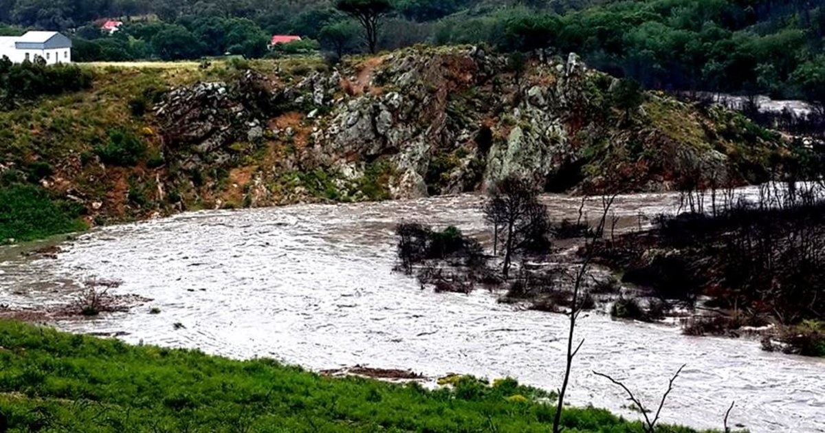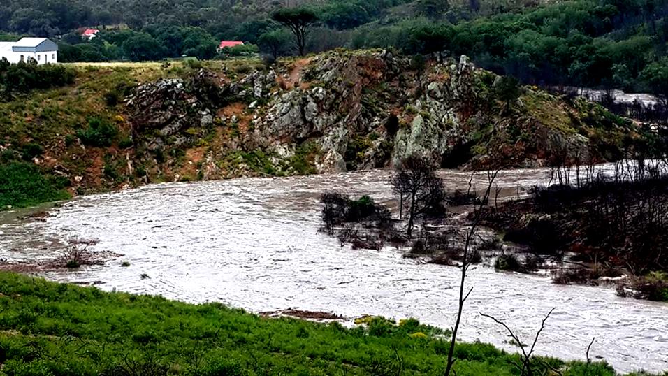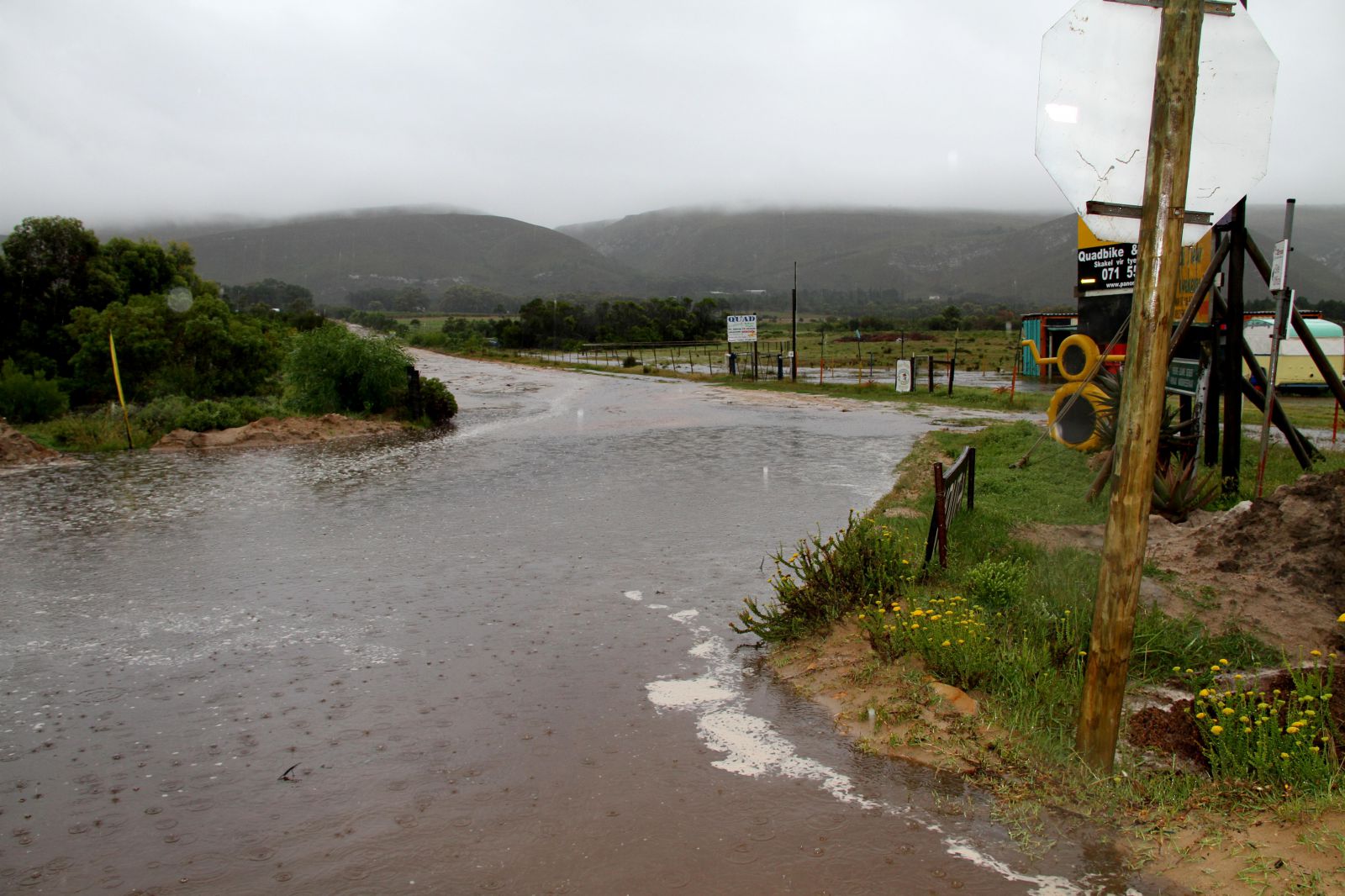 Stortreën het vanaf Vrydagmiddag om 14:00 begin neersak en daarna onophoudelik gereën. Teen Saterdagoggend het Johan Pieterse se reënmeter in Parkstraat reeds oorgeloop en meer as 100mm is gemeet. "Daarna het dit nog 40mm tot Saterdag-middag 18:40 opgevang.