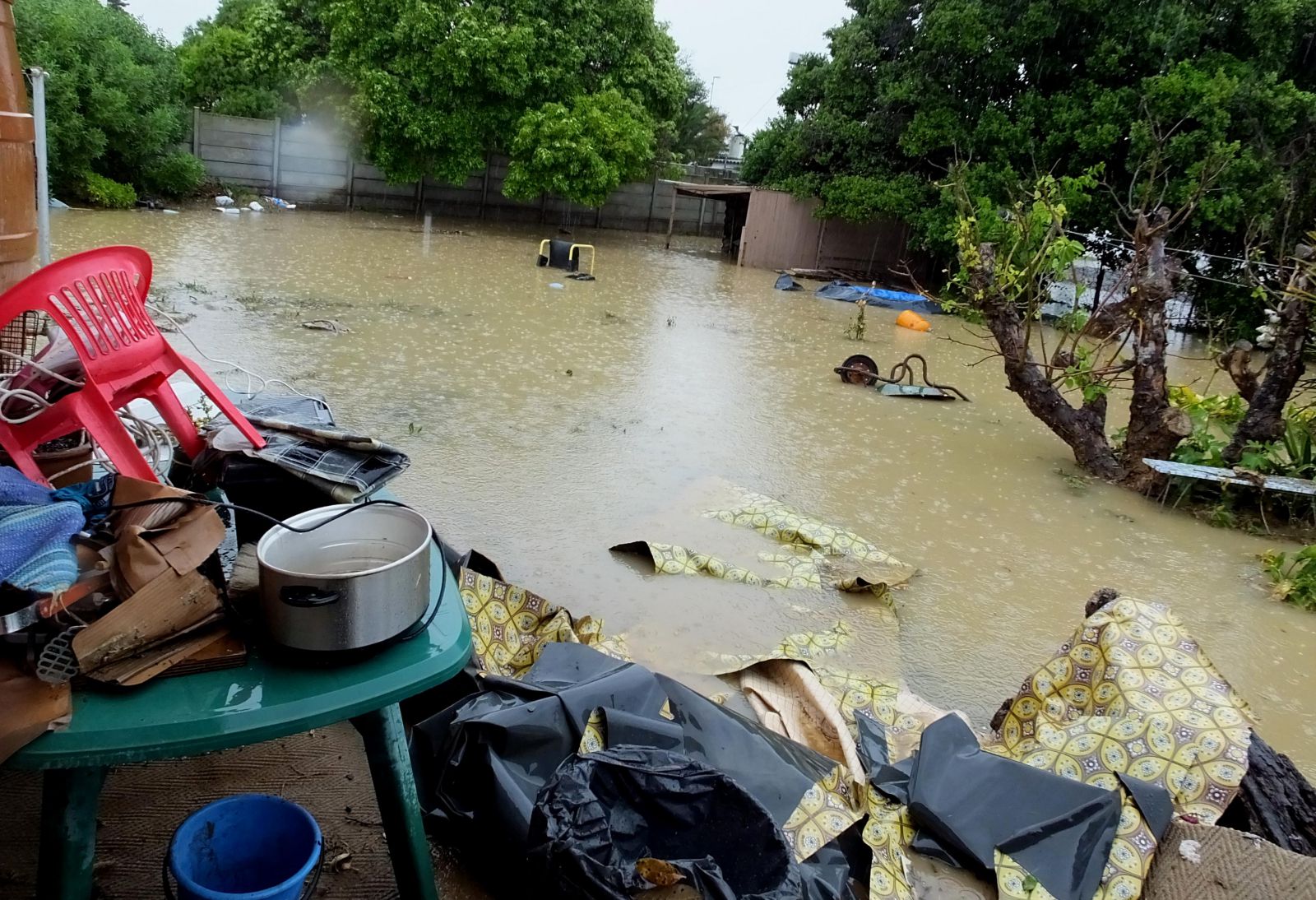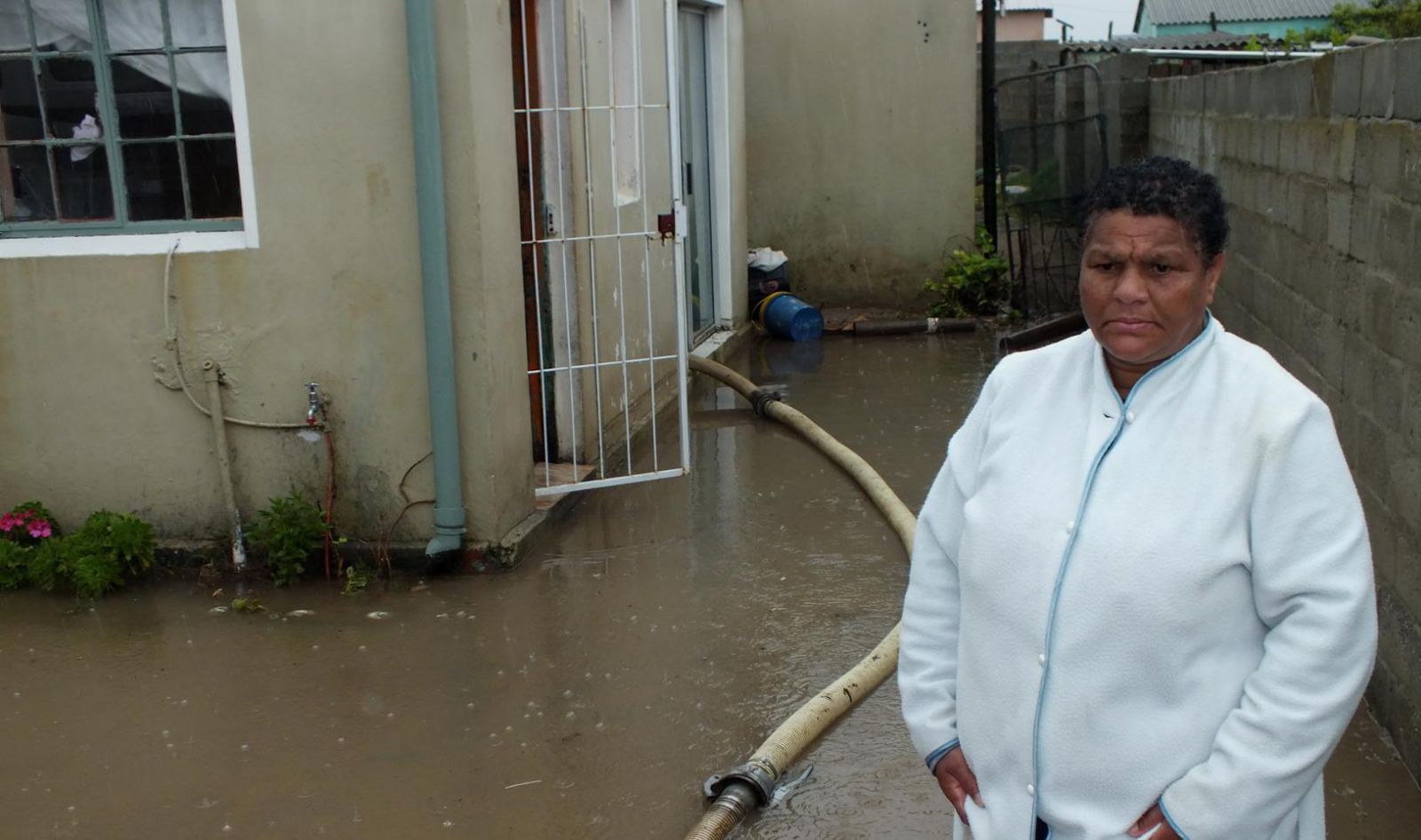Ná Vrydagnag se gietende reën, asook Saterdag se deurdringende reën, was vele wonings weer onder water. Groot skade is in die proses gelei, nie lank na die vorige oorstromings nie. Een van hulle is die woning van Mary Jacobs van Madeliefiestraat 9, Blompark. Met die aankoms van Gansbaai Courant by die woning, was Gansbaai munisipaliteit al besig om ‘n tweede groot tenk water uit te pomp. “Ek weet nog nie hoe lyk dit in my huis nie, maar daar kan nie iets oor wees nie,” het ‘n hartseer en geskokte Mary gesê.