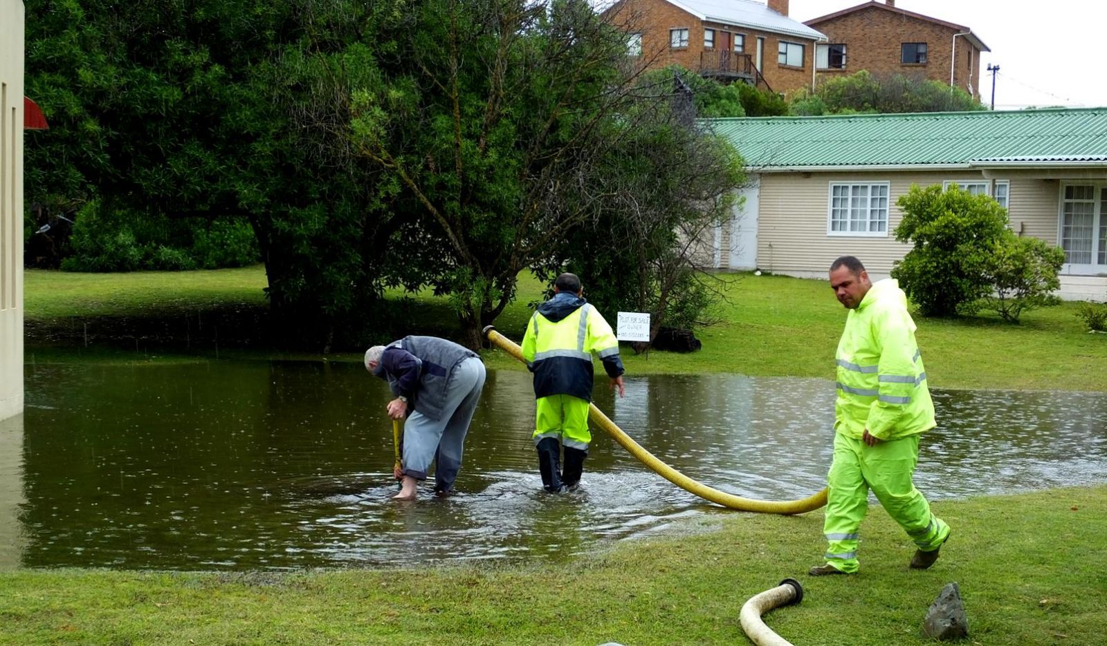 Ná Vrydagnag se gietende reën, asook Saterdag se deurdringende reën, was vele wonings weer onder water. Groot skade is in die proses gelei, nie lank na die vorige oorstromings nie. Een van hulle is die woning van Mary Jacobs van Madeliefiestraat 9, Blompark. Met die aankoms van Gansbaai Courant by die woning, was Gansbaai munisipaliteit al besig om ‘n tweede groot tenk water uit te pomp. “Ek weet nog nie hoe lyk dit in my huis nie, maar daar kan nie iets oor wees nie,” het ‘n hartseer en geskokte Mary gesê.