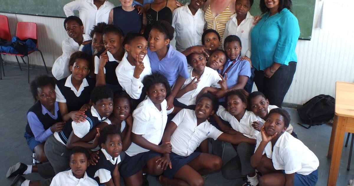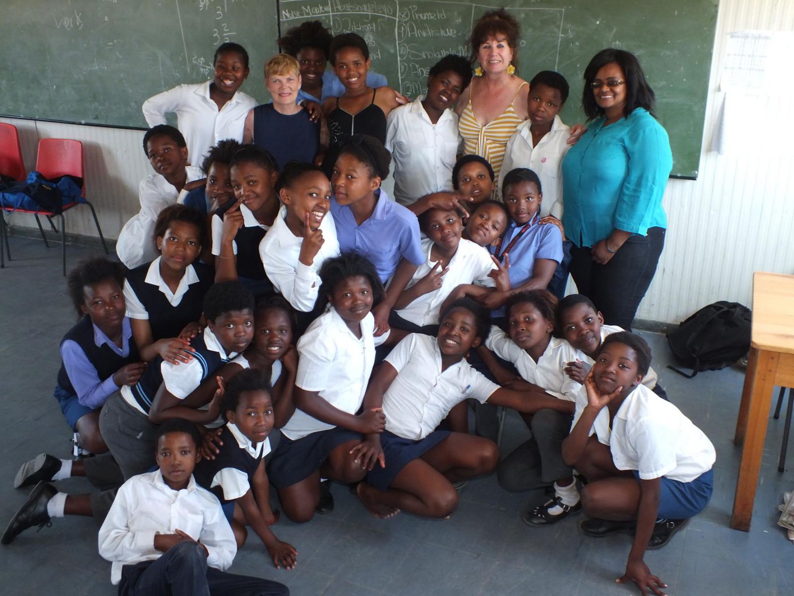 Die Masakhane dansertjies, met agter vlnr Anita Botha (2de), Margi Muller (5de) en Evelyn Tshisa (7de)