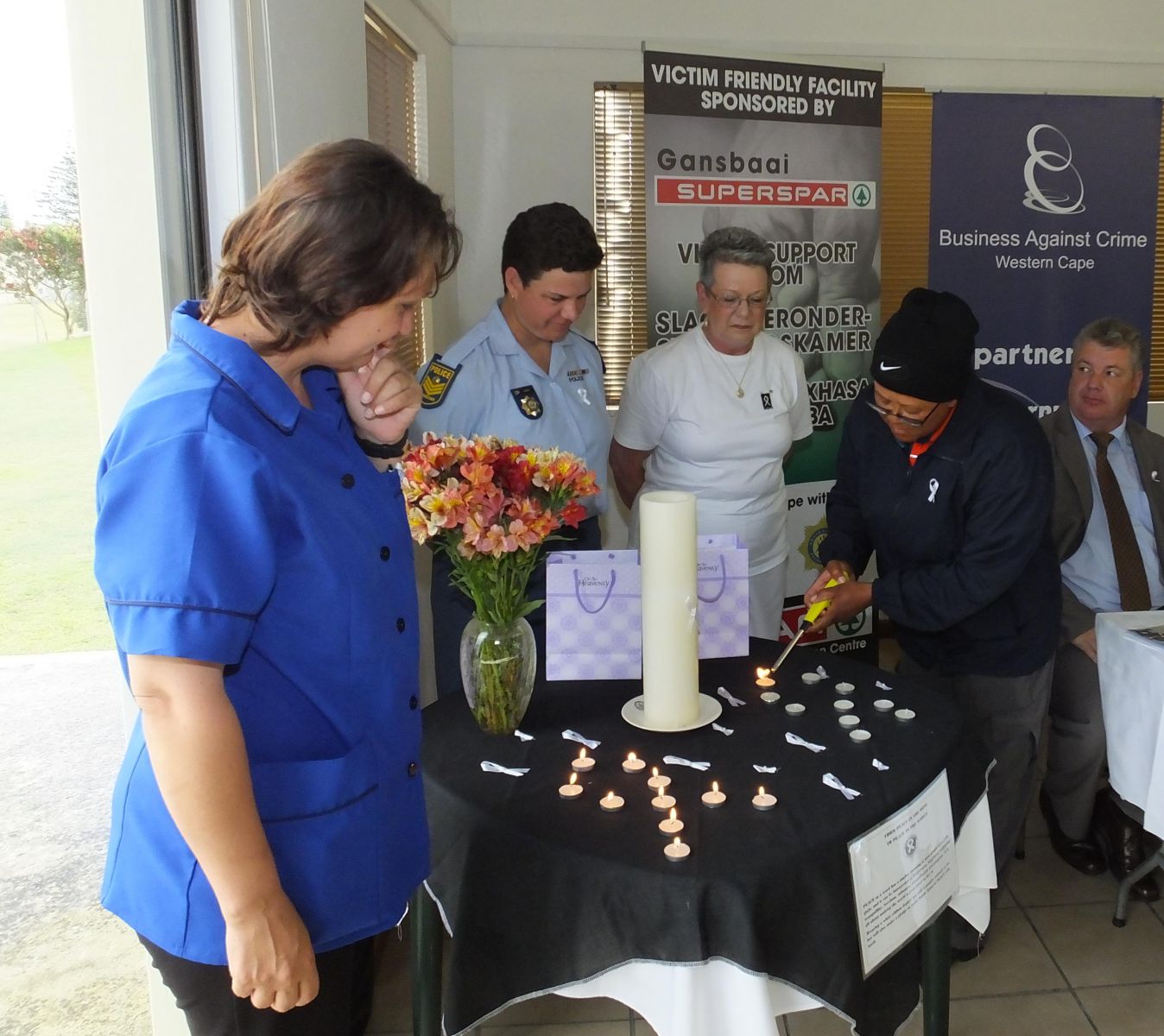 Bo: Trauma slagoffers, Elisha Wessels (links) en Eleanore Baartman steek kersies aan vir slagoffers van geweld.