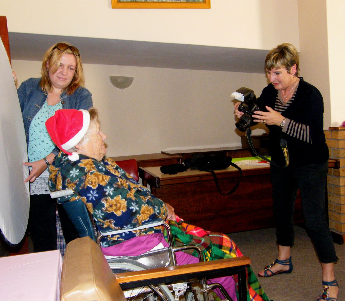 Regs is Jane Bailey in aksie vir die neem van ‘n foto tydens die HaS-projek, met haar dogter, Genevieve Bailey wat haar behulpsaam is