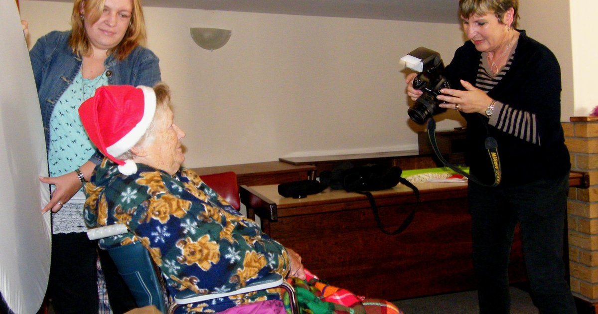 Regs is Jane Bailey in aksie vir die neem van ‘n foto tydens die HaS-projek, met haar dogter, Genevieve Bailey wat haar behulpsaam is