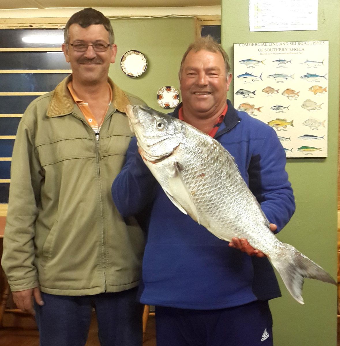 Links is Leibrandt van Niekerk saam met Oubaas Lesch met sy 5.9kg wit steenbras