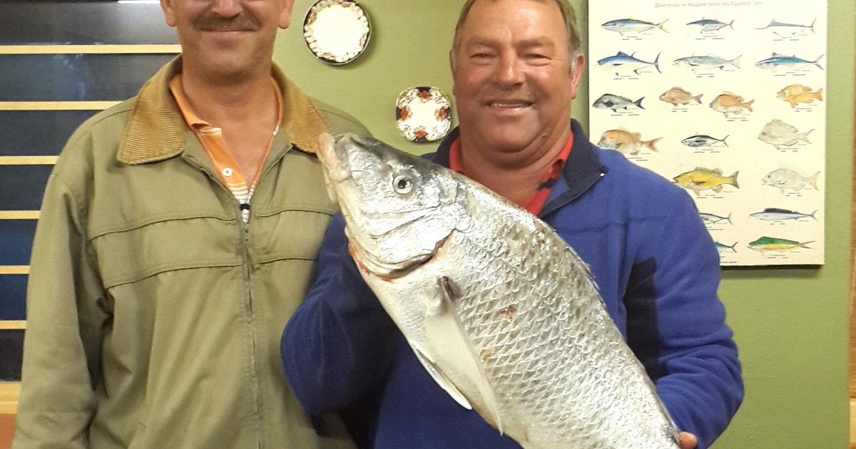Oubaas Lesch van die Overberg Kushengelklub het onlangs, ondanks min vangstes, die grootste vis en daarmee die swaarste sak ingepalm. Hy het ‘n wit steenbras van 5.9kg tydens die klub se kompetisie op 12 November kant toe gebring.