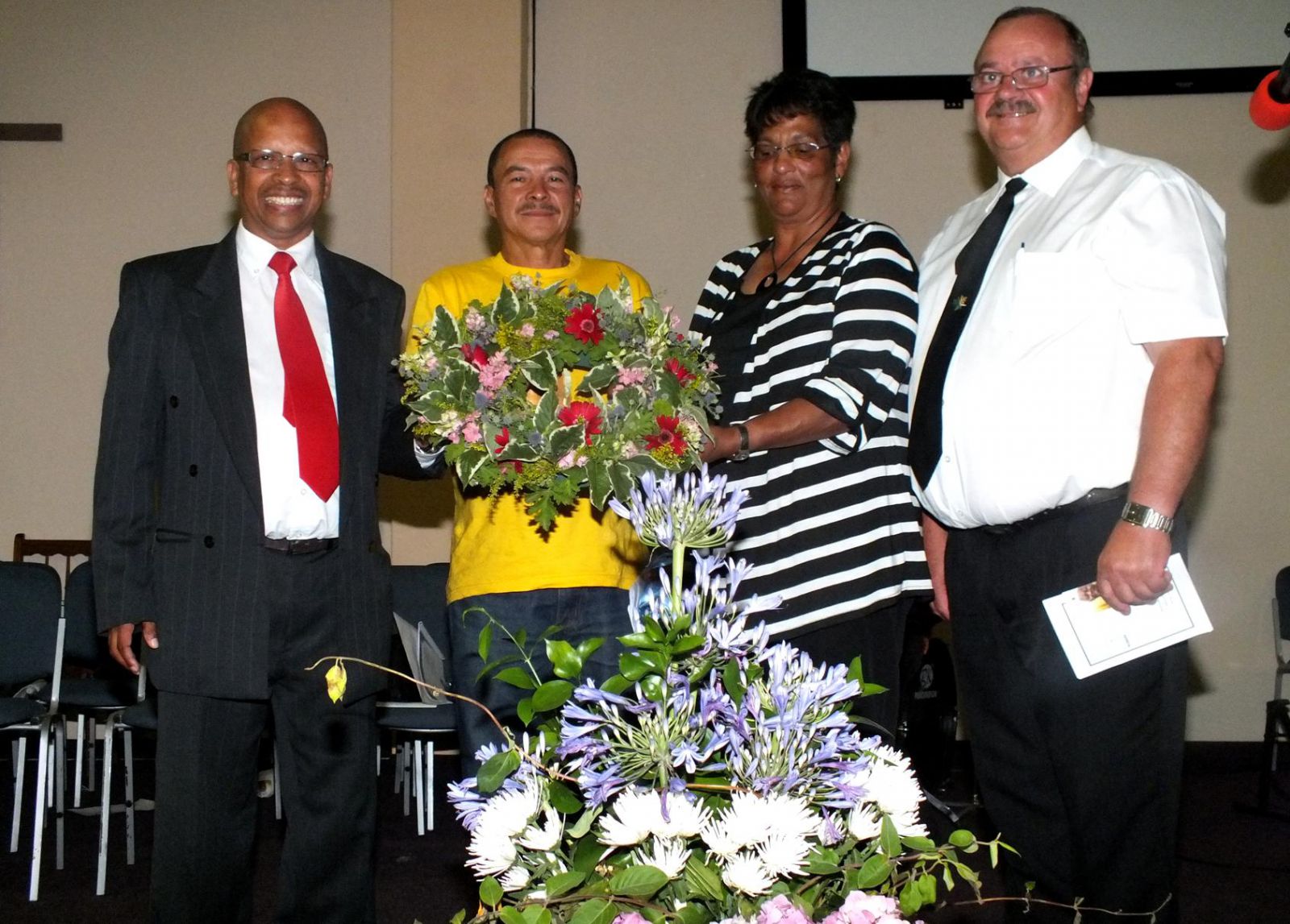 Vlnr is rdl Rudolf Smith, rdl Phillipus May, rdl Moira Opperman en mnr Kat Myburgh tydens die kransleggings-seremonie
