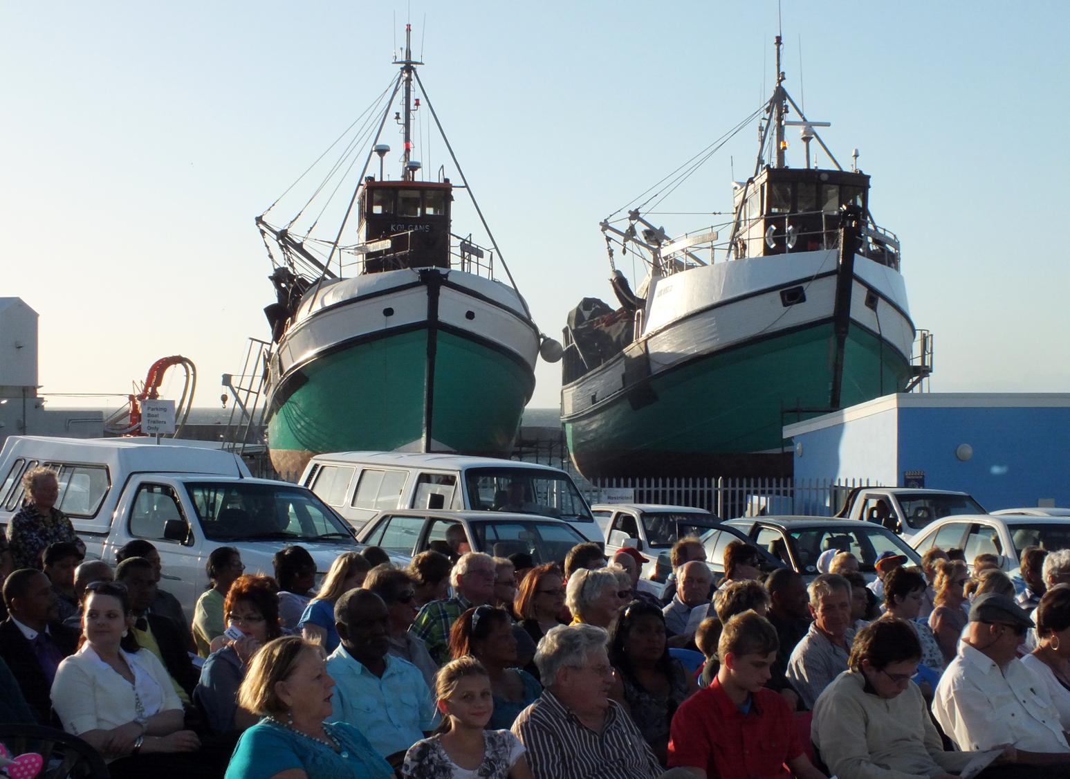 ‘n Deel van die groep mense wat die Vissermans Dankseggingsdiens in Gansbaai Hawe bygewoon het