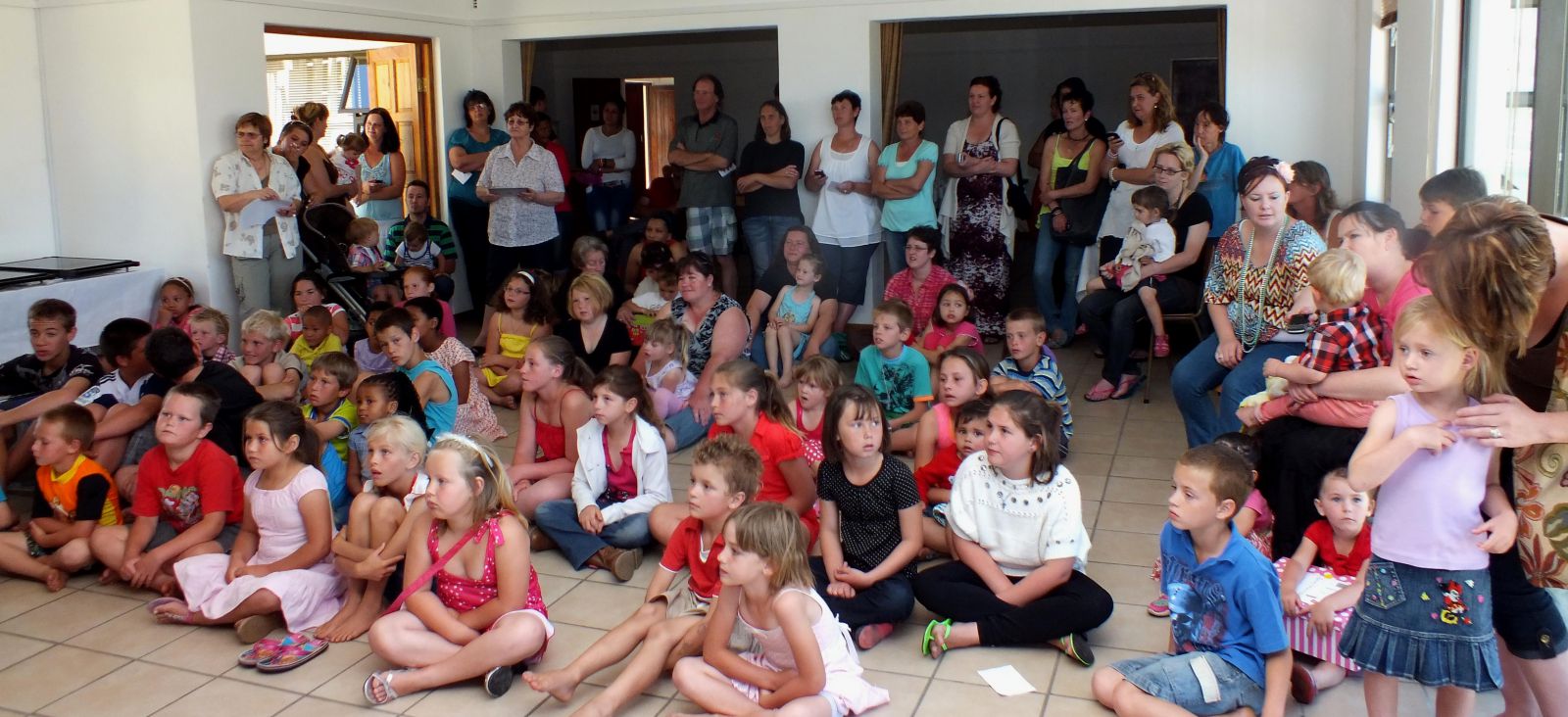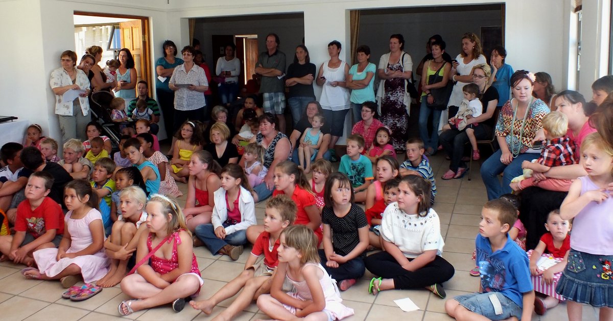 Hier word daar aandagtig na Hettie Oosthuyzen se storie geluister, maar in groot afwagting vir Kersvader se geskenke