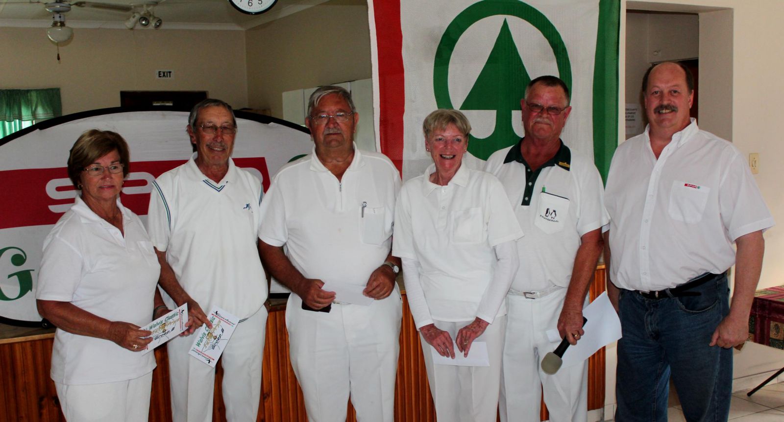 Groep B eerste plek - vlnr Pauline Viljoen , Billy Diedericks ,Wally Nimb en Magda Diedericks, Ivan Giles (President) en De Wet van Niekerk - Borg SPAR