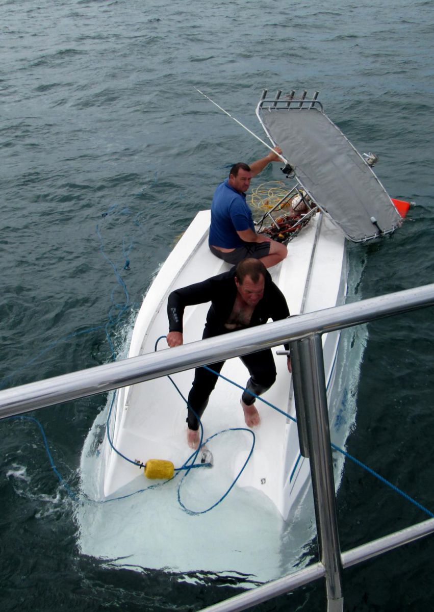 'n Skiboot het verlede Maandagoggend om 07:00 by Blok se Baai omgedop. "Die 5,4m sondakboot 'Het Jou' met 5 bemanningslede het oor 'n deining gegaan. Die wind het ligweg suid gewaai, en die sondak oorgedruk na die stuurboordkant met die gevolg dat die bemanning na daardie kant van die boot geval het. Die boot het gevolglik omgedop," het die verteenwoordiger van die NSRI, Koos de Kock, gesê. Die drenkelinge het op die romp geklim en noodfakkels afgeskiet. Drawwers teen die kuslyn het dit opgemerk en alarm gemaak. Die haaiboot "Lady T" wat op daardie stadium op pad uit was, het die drenkelinge: Jan Lourens (skipper, eienaar), Wanda Lourens (eggenote), Martin en Douw Lourens, en Mike (Jnr) Germishuys, opgepik en na Kleinbaai Hawe geneem. Die skiboot is later na Kleinbaai gesleep.