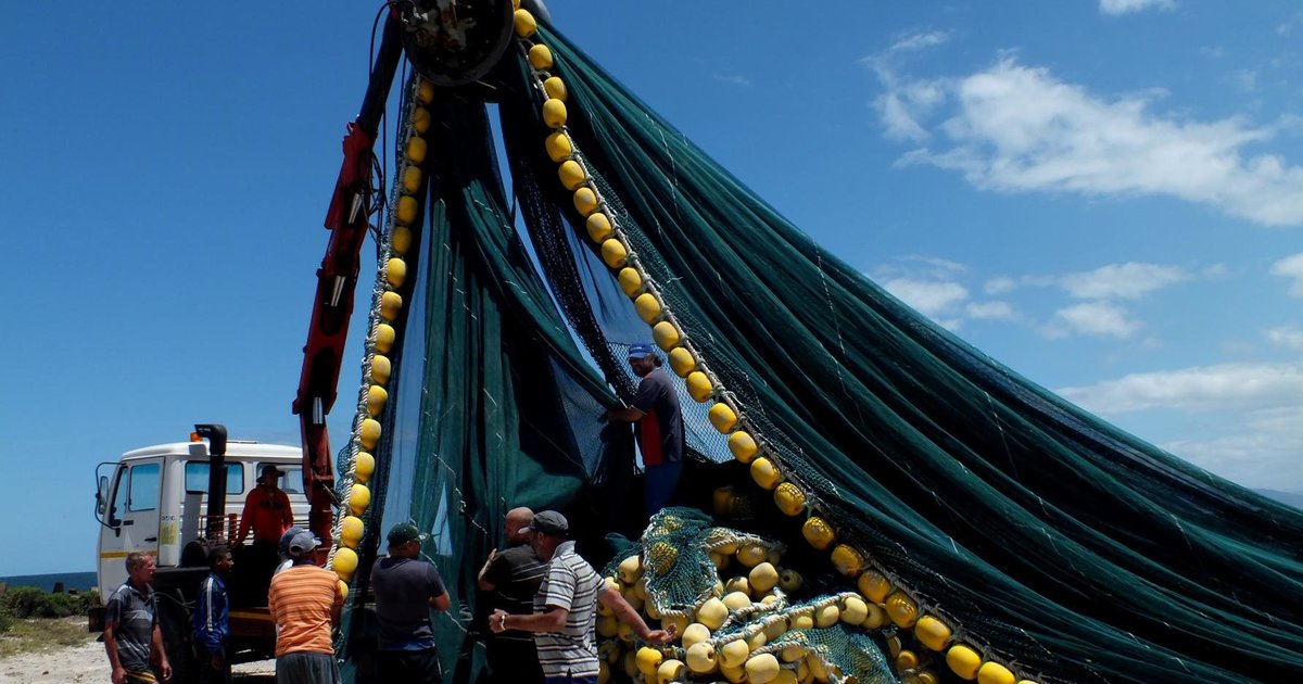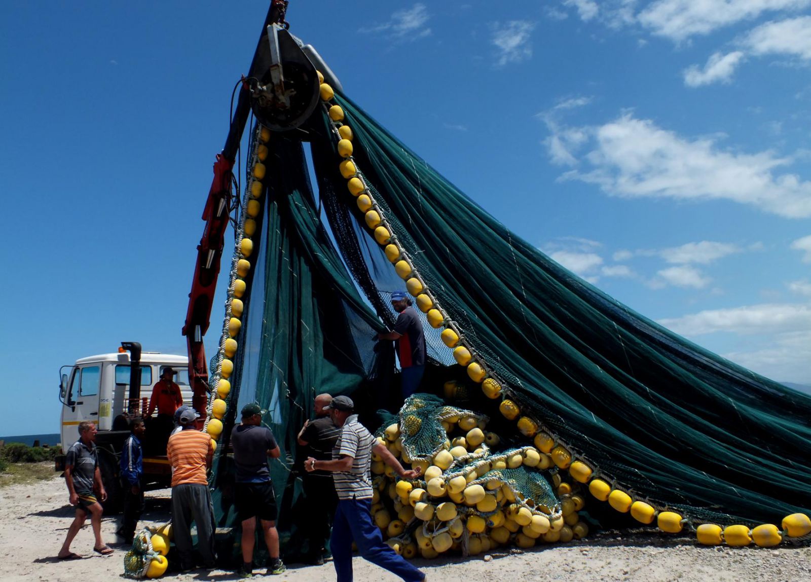 Skipper Ockie Viljoen van Silver Snapper en sy span is hier besig met die “finale rusproses” wat aangebreek het tydens die “boet” van nette om dit vir 2014 gereed te kry