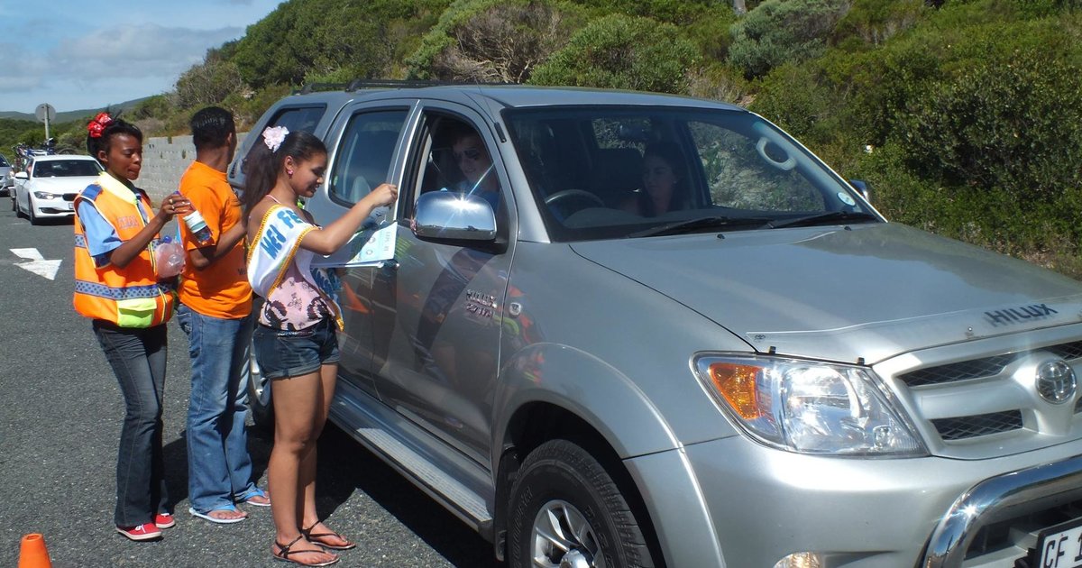Glenda Kitley, Gansbaai Toerisme Bestuurder doen haar deel tydens die Vriendelike Padblokkade