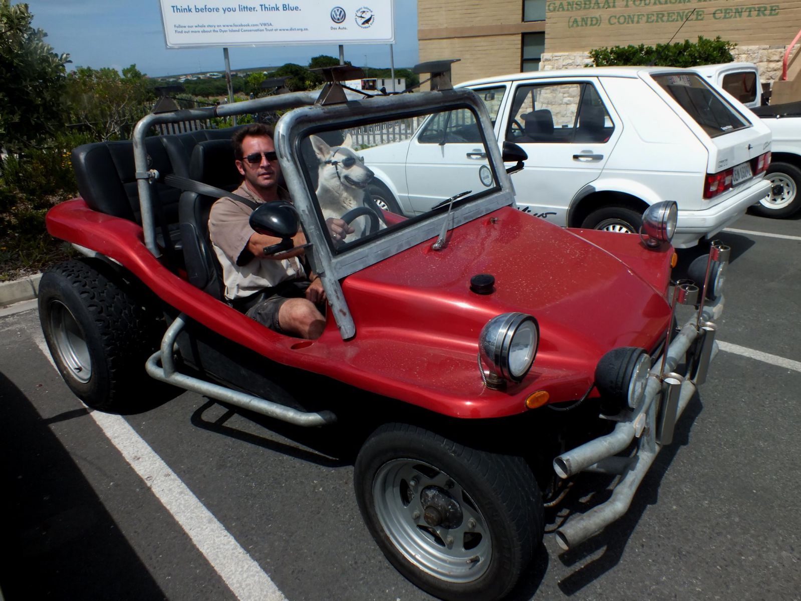 Gansbaai se honde-celeb, Pluto, is vakansie-gereed. Donkerbril op, veiligheidsgordel vasgegordel en nou moet sy eienaar, Leon Odendaal van Perlemoenbaai wikkel - daar is nog baie om te besigtig.