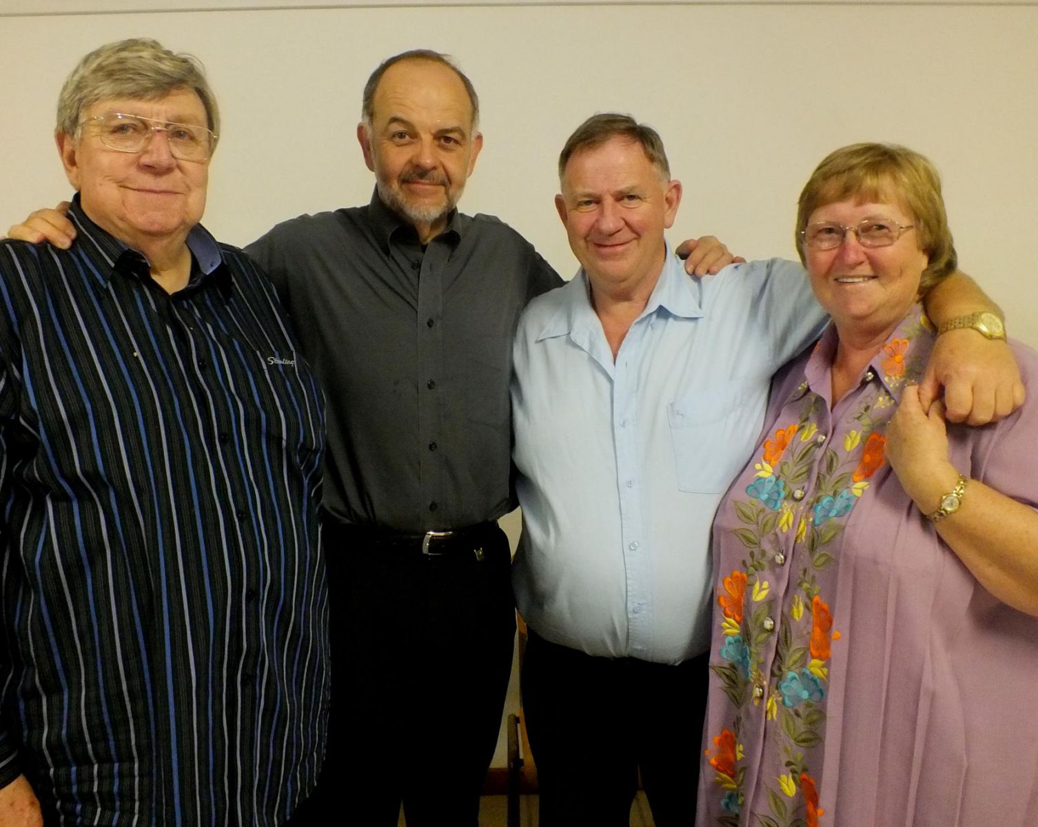 Vlnr is Petrus du Preez, Piet Smit, gospelsanger en Coenie en Simoné Fourie