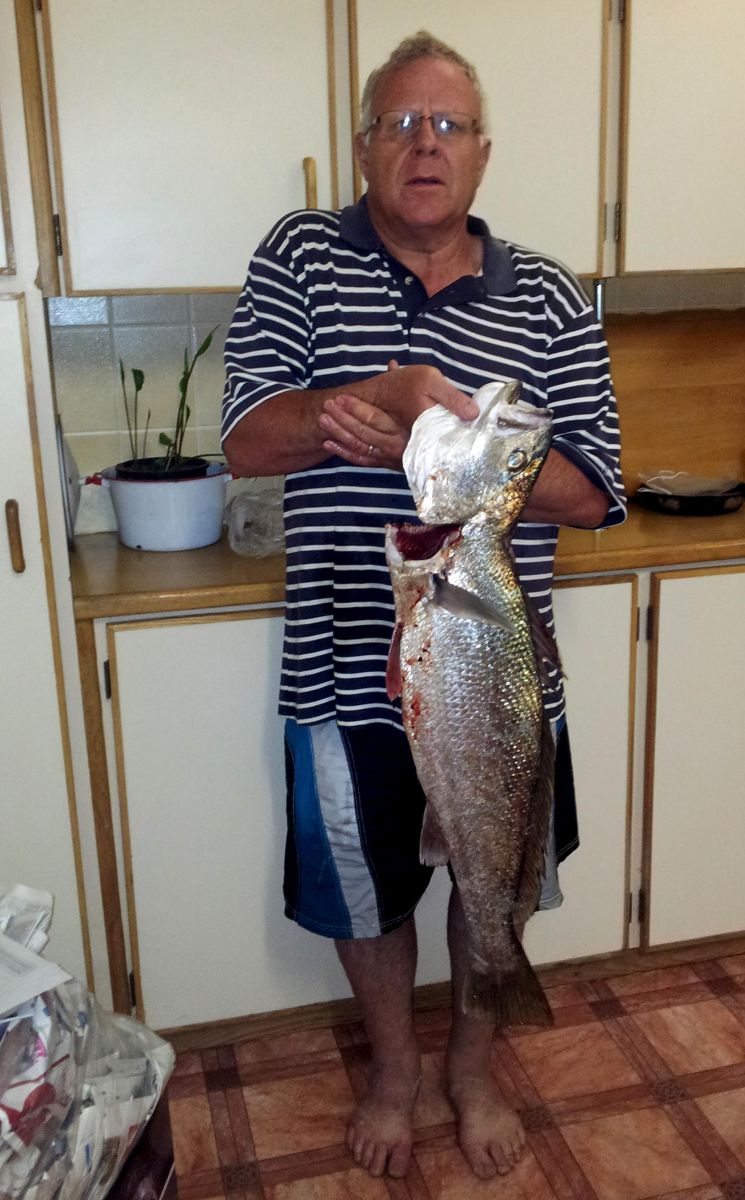 “Dit was laag-laag water en ons moes Huisbesoek sowat 200m ver dra om in die see te kon kom,” vertel Dirk. Goeie vangstes (wettiglik!) was aan die orde van die dag: 9 kabeljoue en ‘n geelbek. Mens is net nie seker of daar vir al die vis én die twee manne genoeg plek op “Huisbesoek” was nie. Die twee manne het sardyn as aas gebruik en is nie bietjie trots op hulself nie.