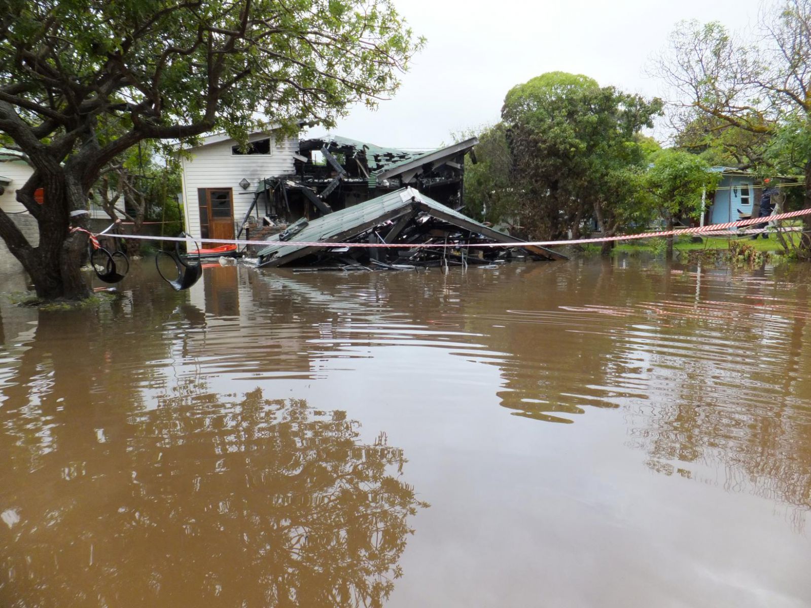 Die Uilkraal-vakansiehuis van André Wessels wat tydens ‘n brand verwoes is en daarna die volgende oggend oorstroom is ná hewige reën. (Foto: Tia Nagel van Ceres)