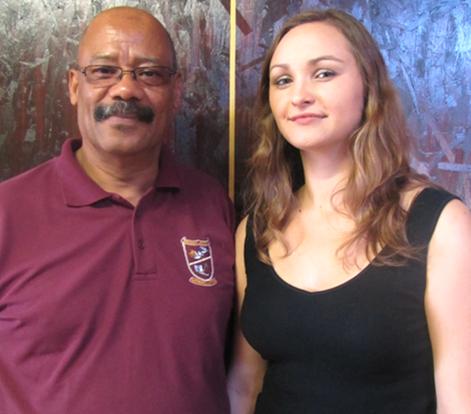 Michelle le Roux, hoofmeisie van 2012 (foto bo saam met Tommy Wilson (links), skoolhoof van Gansbaai Academia), het in 2013 die Nasioale toekenning gekry as die beste Ground – Breaker vir Lovelife.