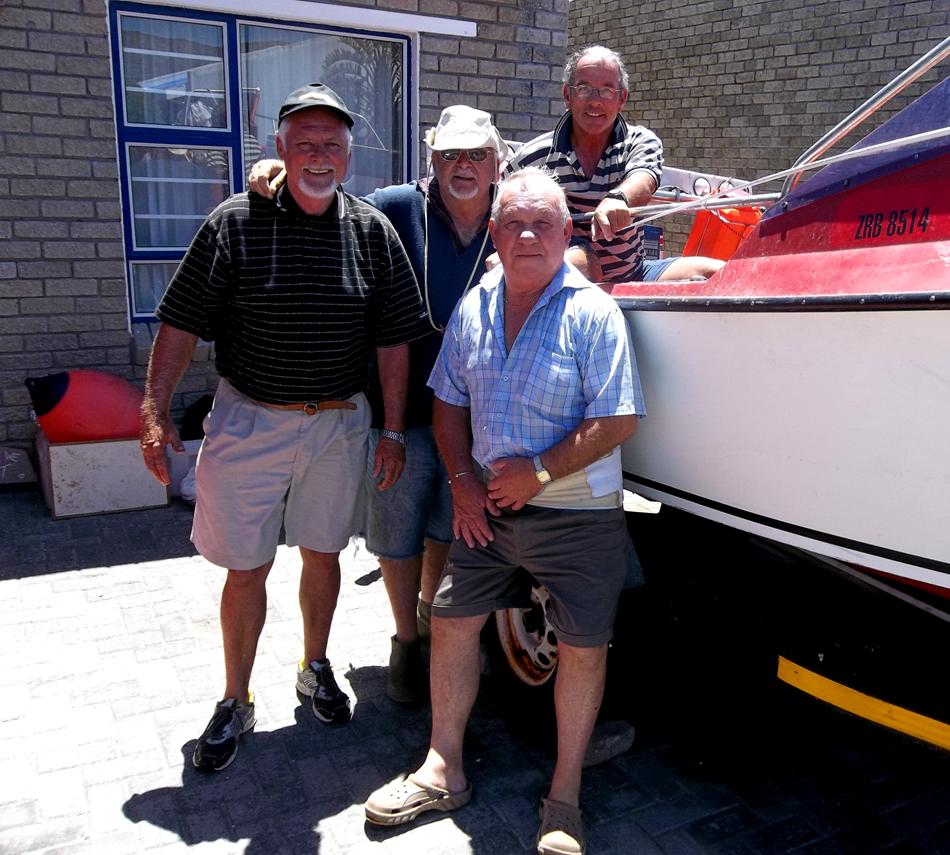 Vlnr: Steve Donnelly, Johan Henn (eienaar), Fred Wolmarans (skipper) en Steve Selbourn, van die boot, Cath-Lean. Manne wat die dag op see geniet.