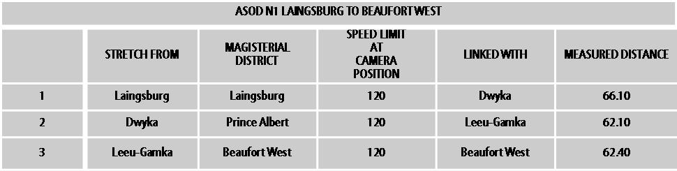 The highly successful Average Speed Over Distance (ASOD) camera enforcement network has now been extended to cover a larger part of the notorious stretch of the N1 road from Beaufort West to Laingsburg in the Western Cape. This is the fourth phase of this enforcement technology that has seen a substantial decrease in both road fatalities, as well as non-compliance in with speed limits, on the province’s most dangerous road. How it works: