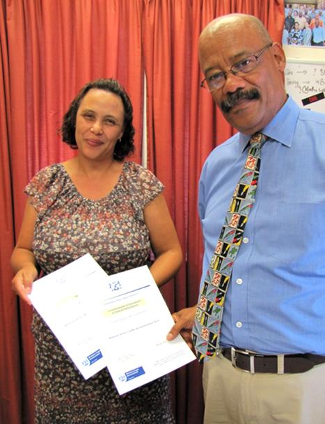 Me Carien Fortuin, waarnemende adjunkhoof (Gr 12 graadhoof) en mnr Tommy Wilson, prinsipaal