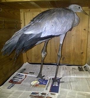 “This Blue Crane came in with a possible fractured leg but after digital radiographs were taken it was established that it had a generalized joint infection of his entire leg. He is being treated as an outpatient with antibiotics and is expected to recover uneventfully.