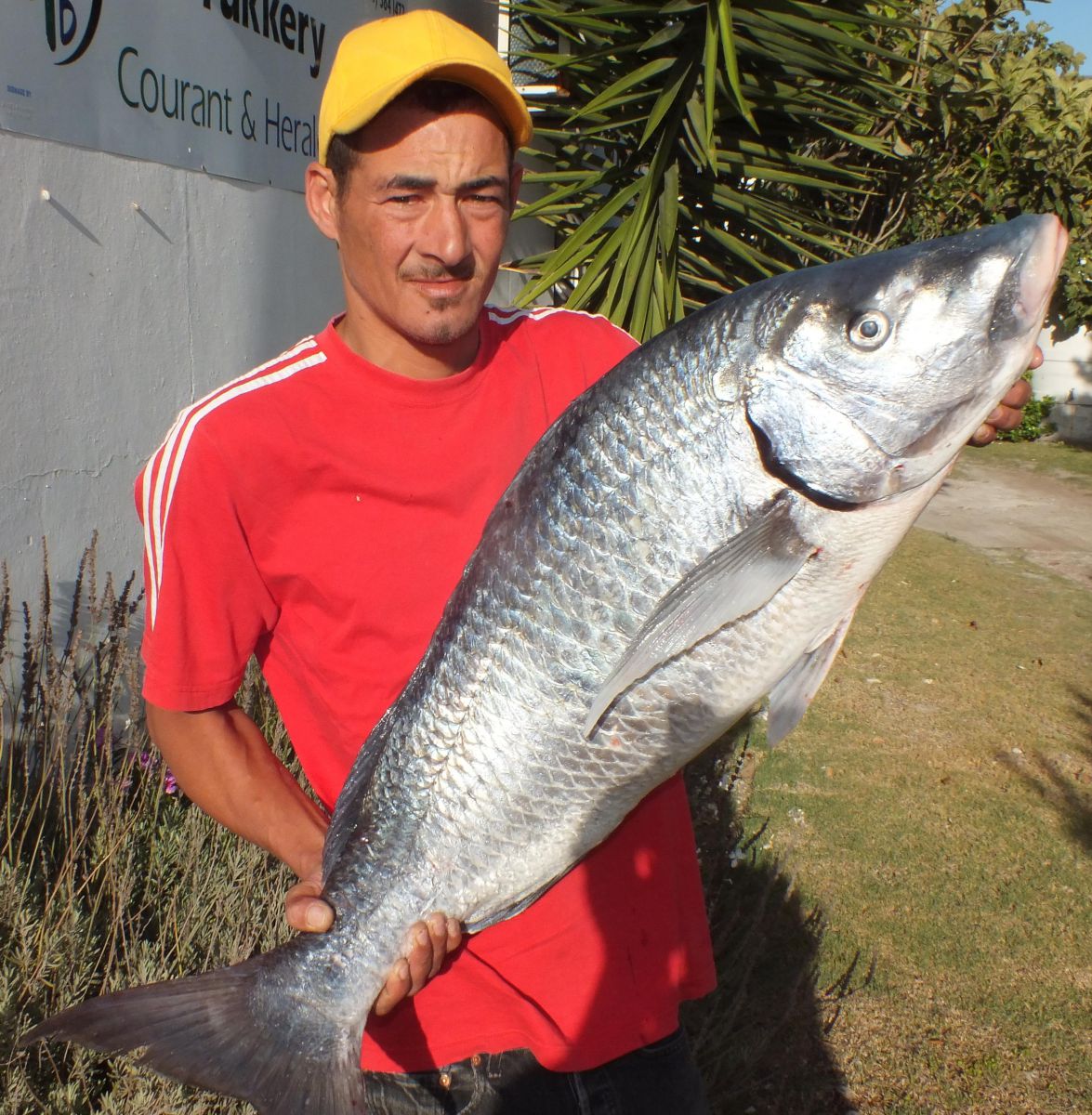 ‘n Behoorlike steenbras wat die skaal eers op 14.3kg laat stilstaan het, is langs die nuwe hawemuur, waar die bote vasgemeer word, gevang. Ricardo Appel het die steenbras op Donderdag, 20 Februarie 2014 gevang. “Ek het sardyn as aas gebruik, met ‘n 40 musgut-hoek,” vertel ‘n baie trotse Ricardo. Hy sê hy vang nie baie gereeld daar vis nie en was baie verbaas (maar ook baie trots!) toe hy daarin geslaag het om hierdie “meneer van ‘n steenbras” met ‘n groot gespook uit die water te kry.
