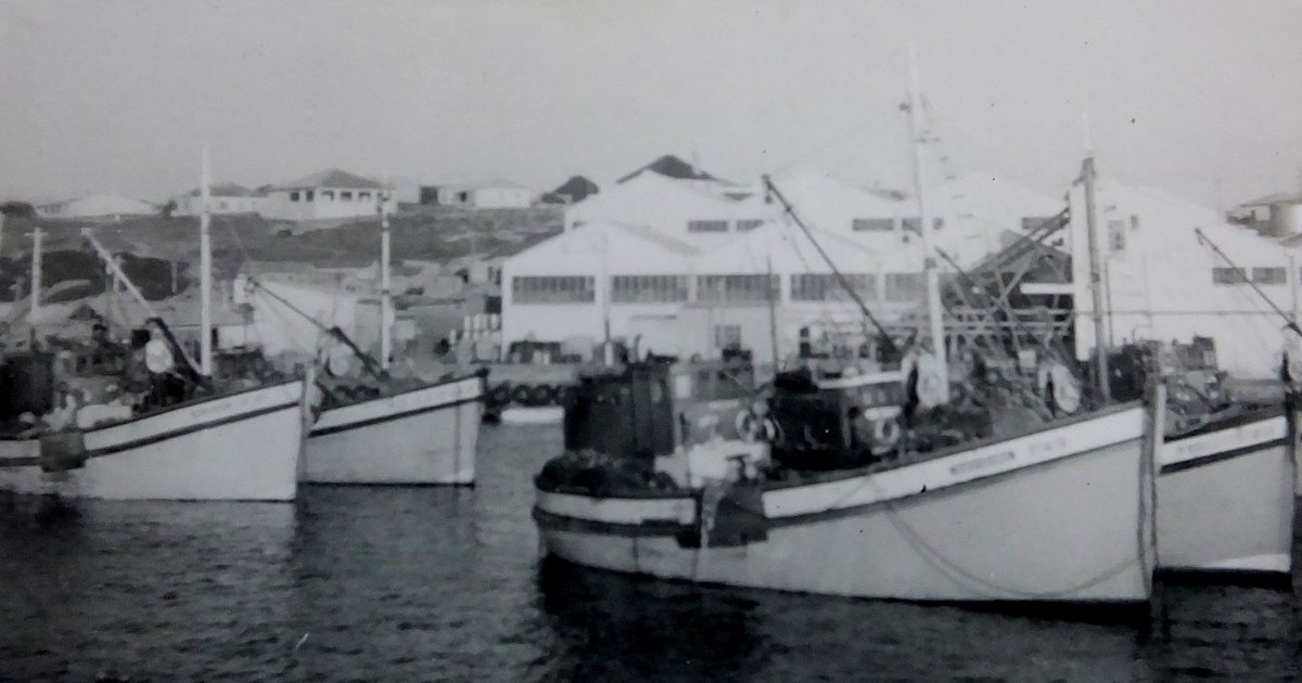 Dié Ganse vissers-vloot (bo) is in Mei 1963 deur Johan Neethling (regs) afgeneem.
