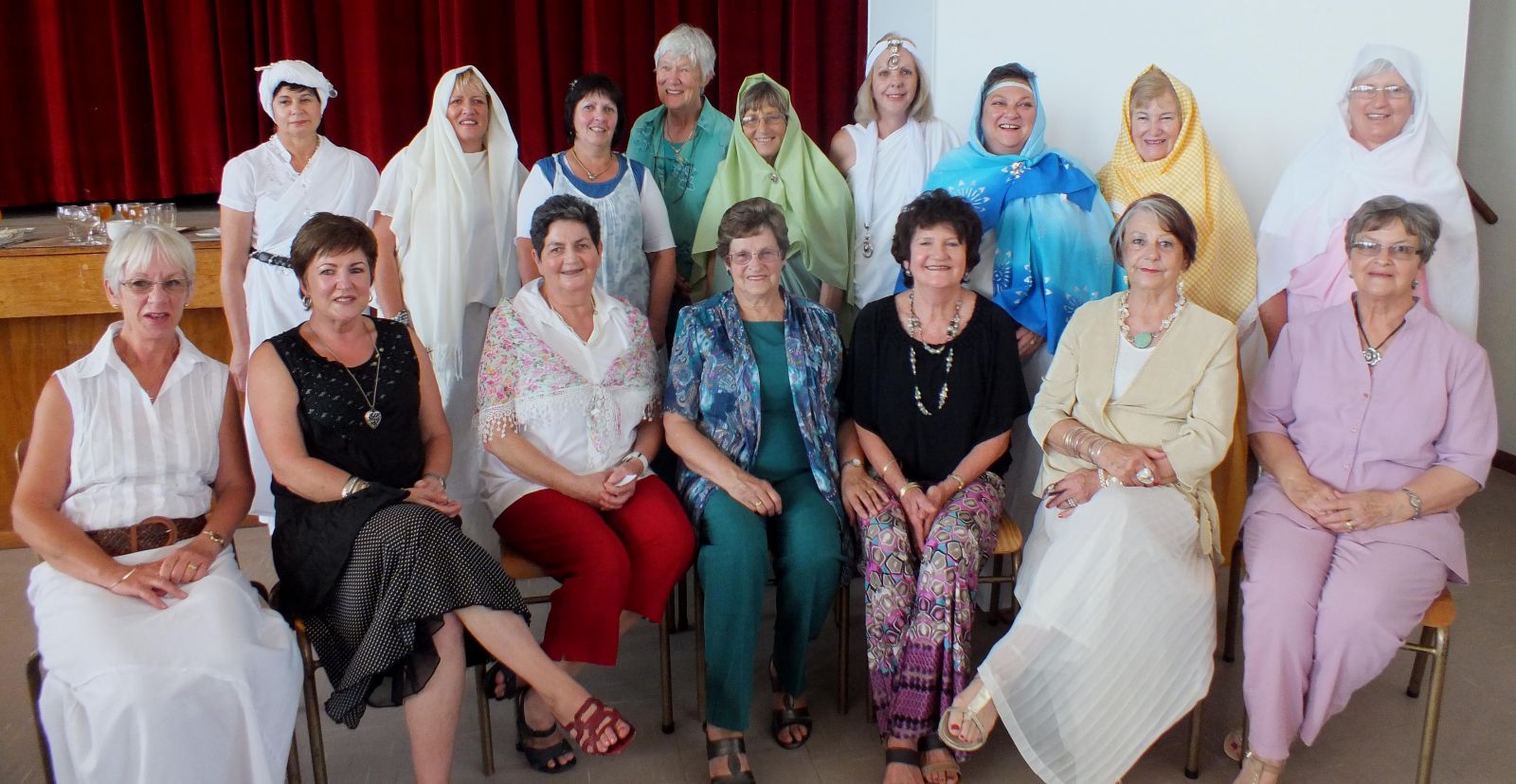 Die gasvrouens van Kleinbaaistreek saam met die “Bybelse”-figure, met die gasspreker, Elma Torr agter 3de van links